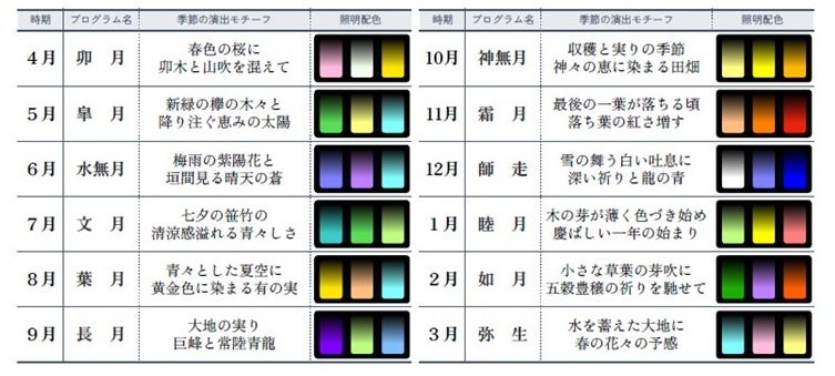 四季折々の表情を「和風月名」になぞらえ、月替わりで竜神大吊橋の夜景を彩る照明演出をお楽しみいただけます。