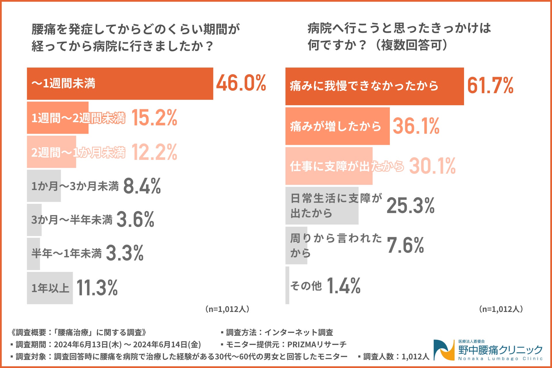 約半数の方が腰痛発症後、1週間未満で病院に行ったことが明らかになりました。
