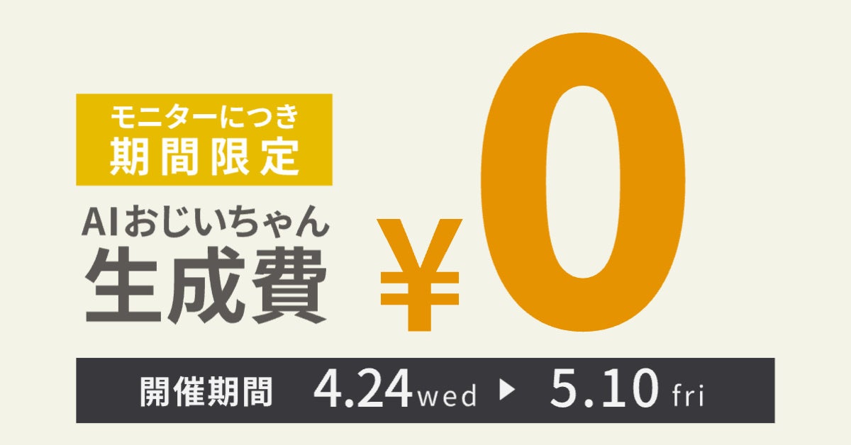 サービス開始に伴い、5月10日まで先着100名までインタビュー撮影費とAI生成費が無料となるキャンペーンを実施いたします。下記webページよりお申し込みください。