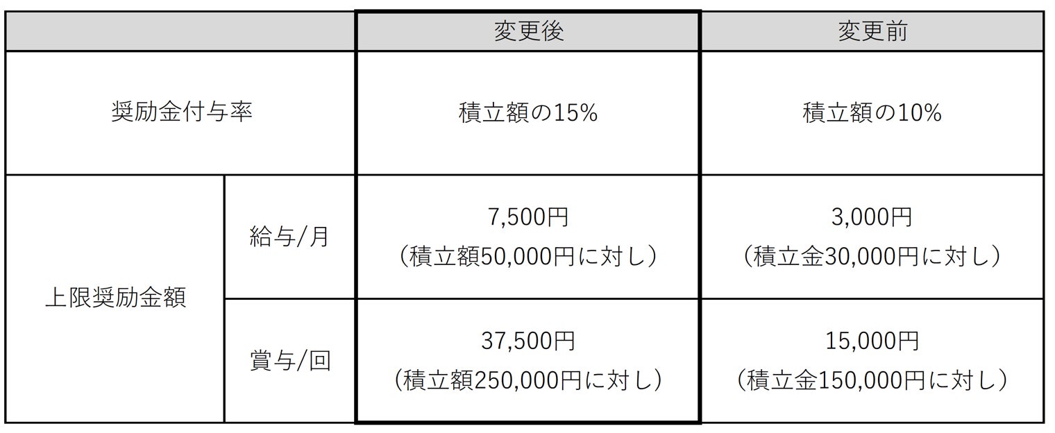 フィード・ワンでは、2023年10月より奨励金付与額を一口当たり100円から150円へ引き上げるとともに、積立上限額の引き上げを行います。奨励金及び積立上限額の引き上げは、従業員の株式購入機会の増加を促進し福利厚生の充実を図るとともに、従業員の経営参画意識を高め、会社組織と従業員のエンゲージメント向上に繋がることを期待しています。