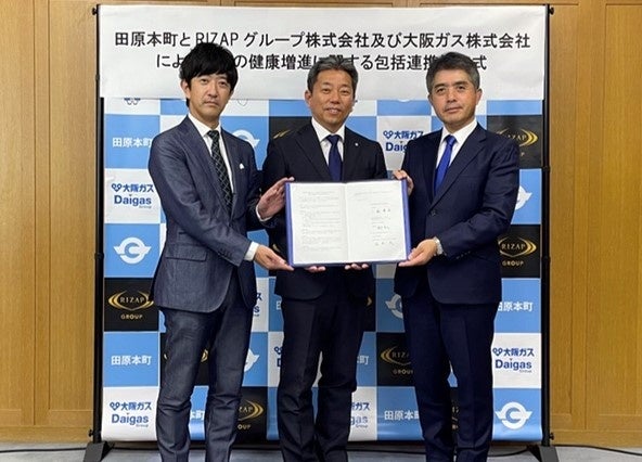 RIZAPグループ株式会社(代表取締役社長 瀬戸 健、本社:東京都新宿区)は、奈良県田原本町(町長 森 章浩)、大阪ガス株式会社(代表取締役社長 藤原 正隆、本社:大阪府中央区)と包括連携協定を2023年11月1日に締結いたしましたのでお知らせいたします。