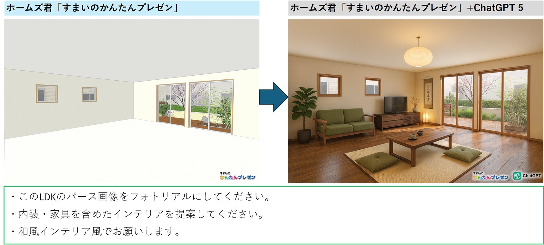 ホームズ君「すまいのかんたんプレゼン」画像生成AIとの連携で安価に高品質なパース作成が可能に