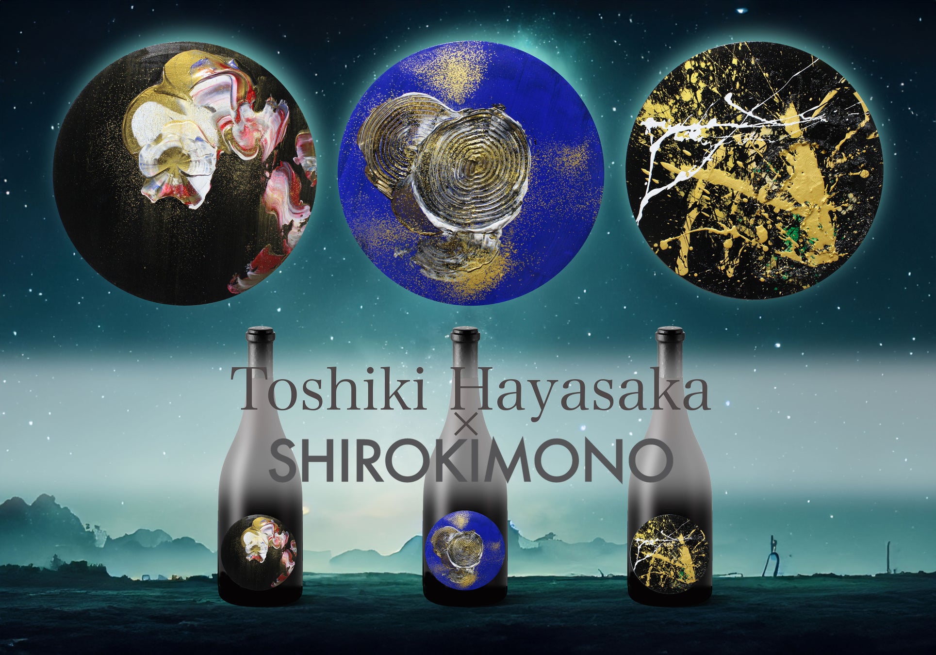 世界で活躍する画家「TOSHIKI HAYASAKA」と、ラグジュアリーSAKEブランド「SHIROKIMONO」がコラボした作品『刹那』。