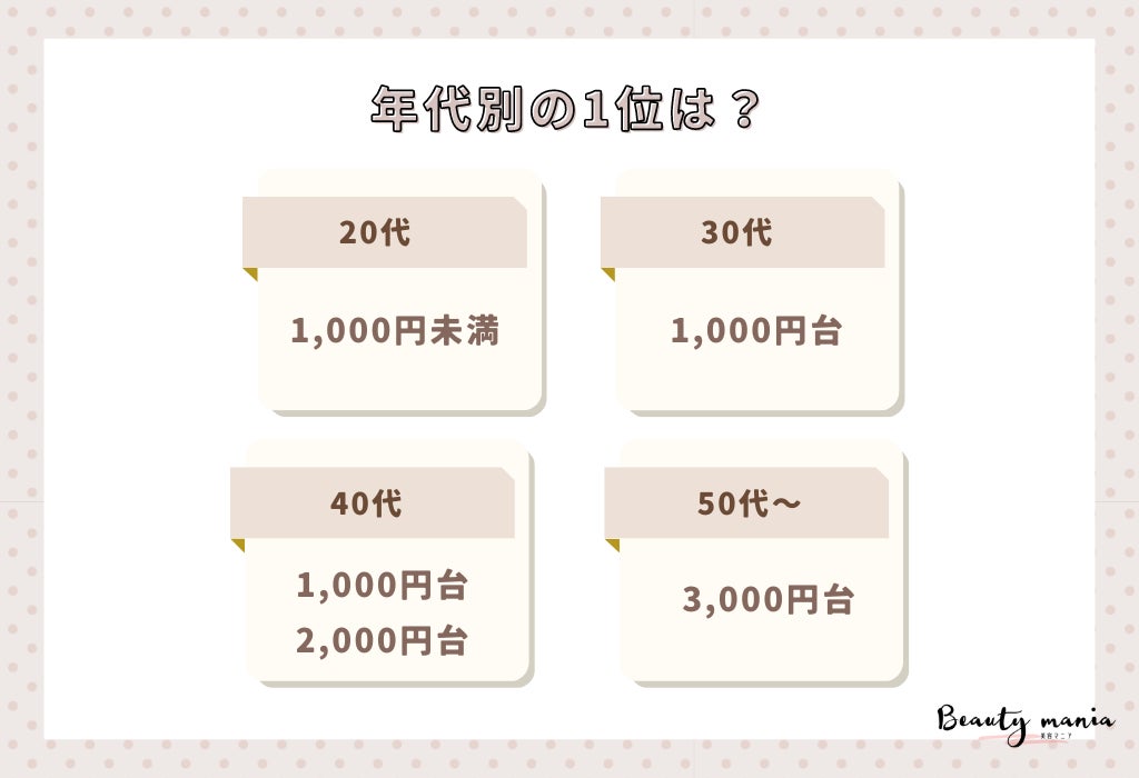 たっぷり使いたい、続けられる価格である、ある程度肌をしっとり潤す効果が期待できるなどの条件を考慮した結果、このくらいの予算が適当かと思います。(50代〜)