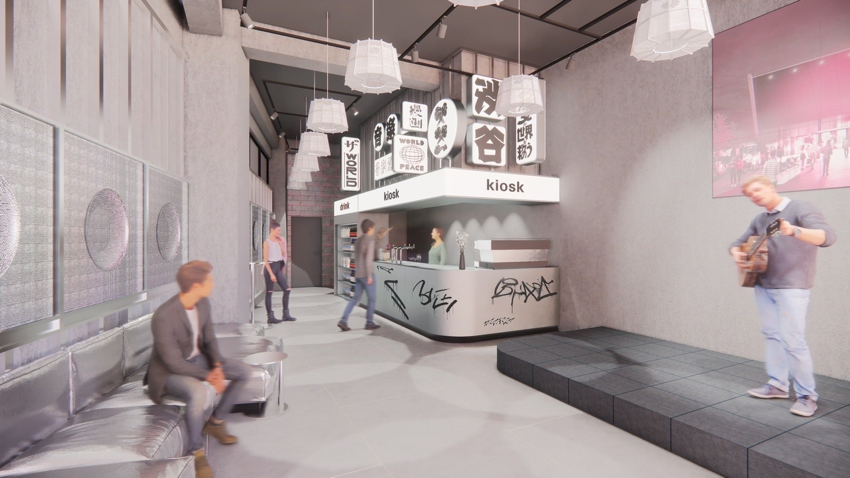 同会場は、「エンターテイメントが世界を救う」をコンセプトに、オンラインとオフライン、そして世界を繋ぐエンタメスポットを目指したカフェ&イベントスペース。