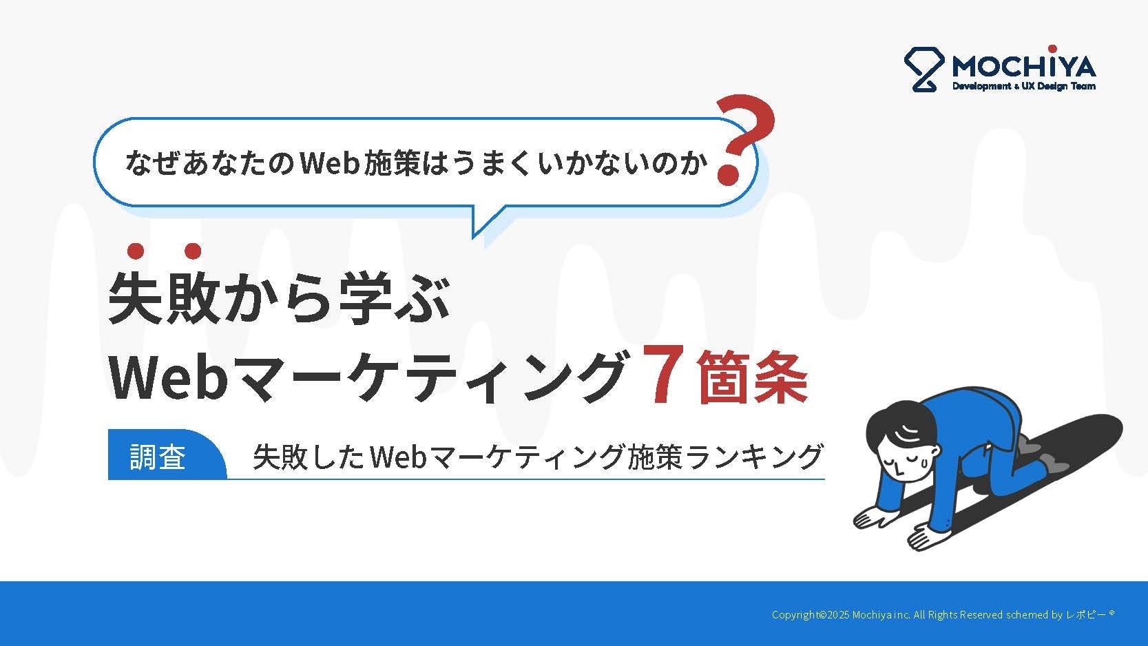 企業のWeb戦略策定を支援するモチヤ株式会社(本社:東京都品川区、代表取締役:阿部 正幸)は、Webマーケティングにおける失敗事例と改善策をまとめたホワイトペーパー『失敗から学ぶWebマーケティング7箇条』の公開にあたり、中小企業経営者101名を対象に「Webマーケティング施策失敗要因に関する実態調査」を実施しました。