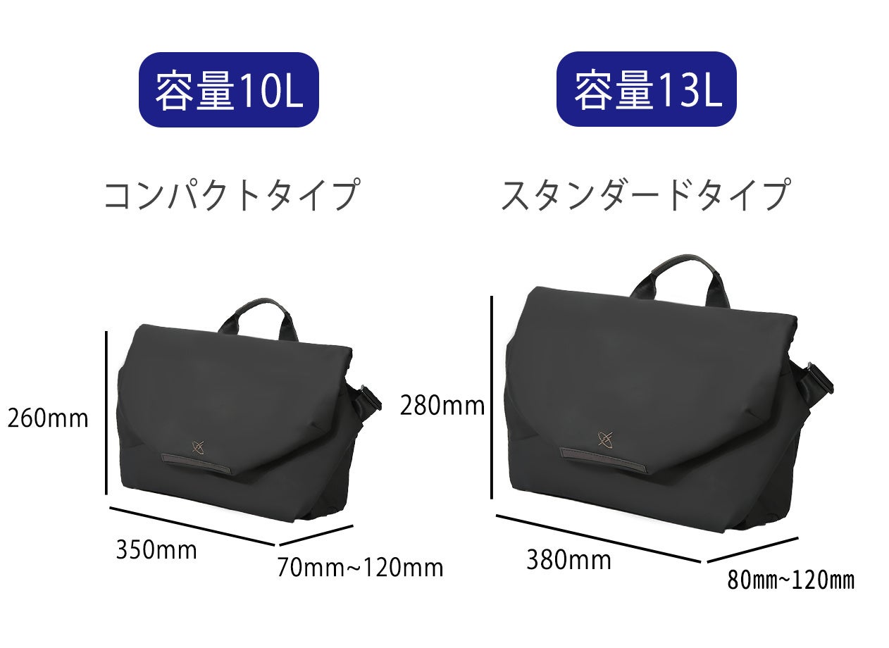 ・コンパクトタイプ:幅350mm×高さ260mm×マチ(70mm〜120mm)