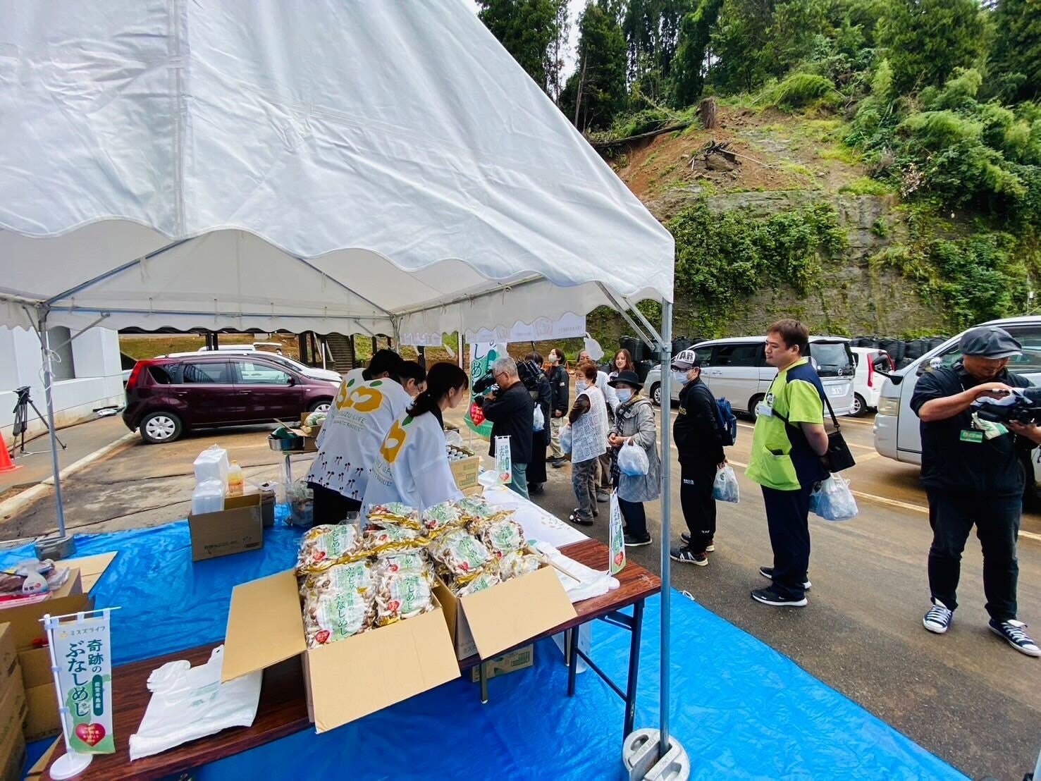 『奇跡のぶなしめじ』は、2024年の能登半島地震発生時に当社の能登工場で培養中だった280万本の培養瓶から菌糸が死滅していない培養瓶120万本を確認し、2回のテスト生育を行い品質的にも風味としても問題ないことを確認し、2024年7月25日に商品化を決定いたしました。そして8月22日には無事に商品としての『奇跡のぶなしめじ』を約3,200kgを収穫・出荷し、スーパーなどの店頭に並び、人々の手に渡りました。その後、10月8日(火)には、能登現地のみなさまに向けて“共に頑張りましょう”というメッセージと地元を支えてくれた感謝の気持ち込めて、能登工場が位置する石川県穴水町にて本商品を使った食事をふるまう会の実施なども行いました。
