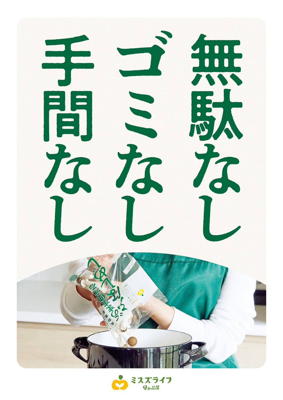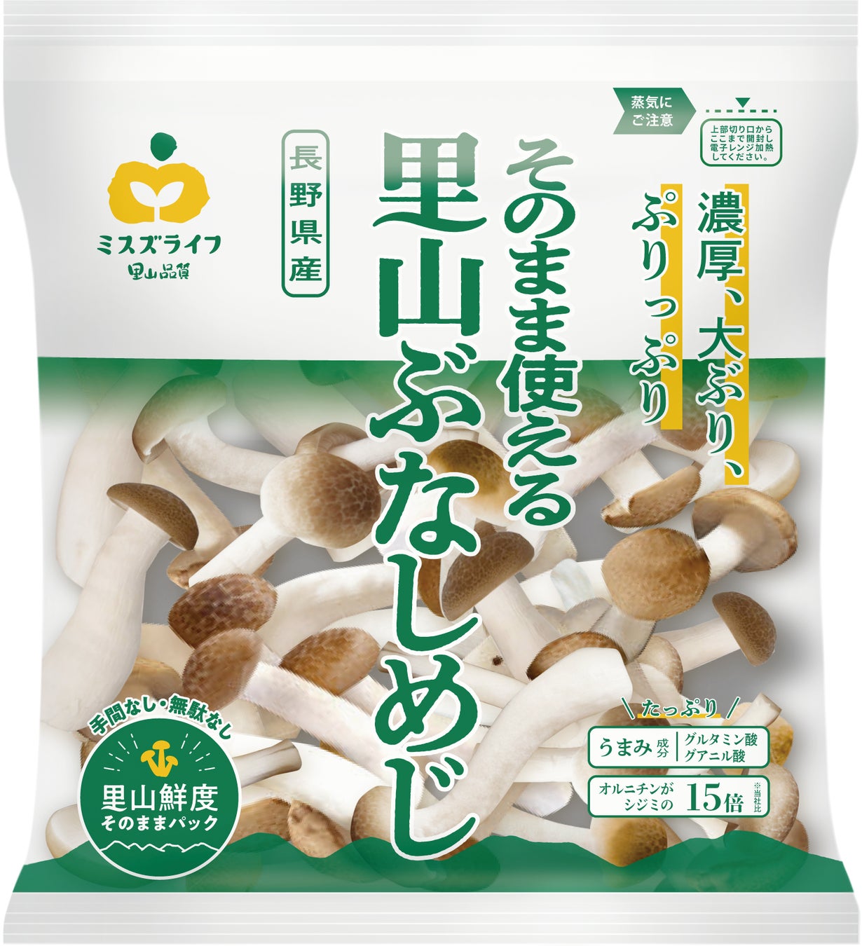 ミスズライフはブランドメッセージとして「里山品質」を掲げ、カットぶなしめじのパイオニアとして、独自の価値を追求し、 思わずそそるような楽しさある表現で、カットぶなしめじの魅力を伝えてまいります。