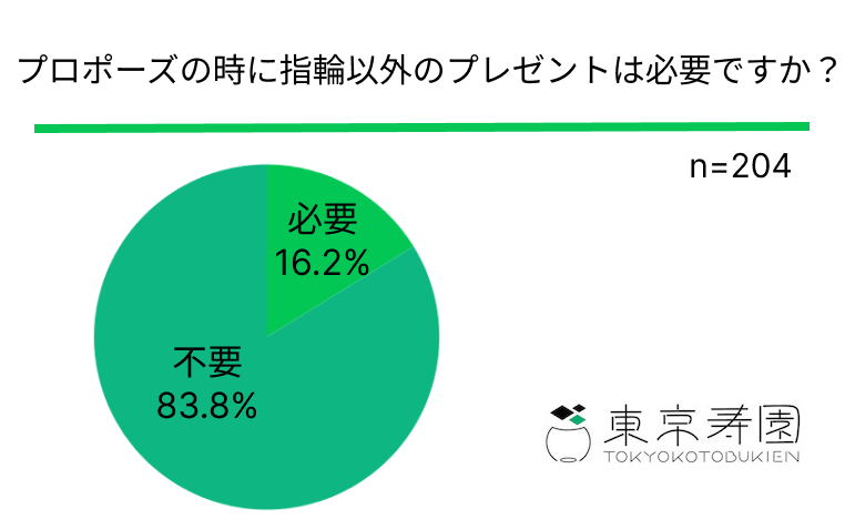 プロポーズの時に指輪以外のプレゼントは「不要」と回答した方は83.8%もいた