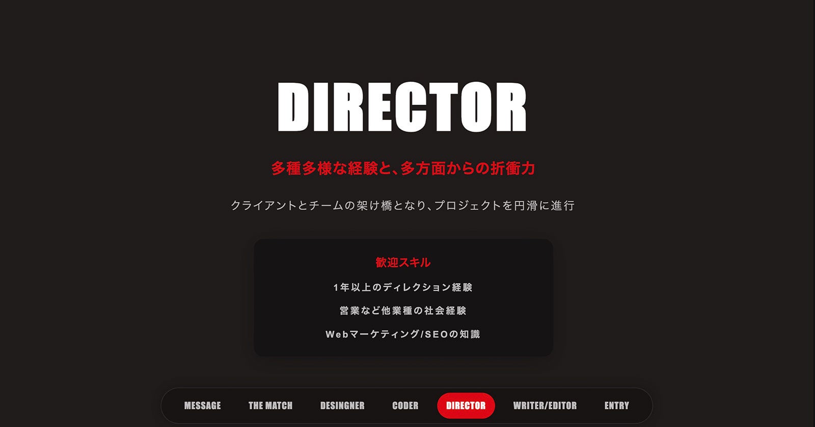 今回の採用ページ公開は、大阪・関西エリアにおいて、よりクライアント様にWeb制作を中心とした成果を提供するために、組織のさらなる拡大と進化を図るための一環です。