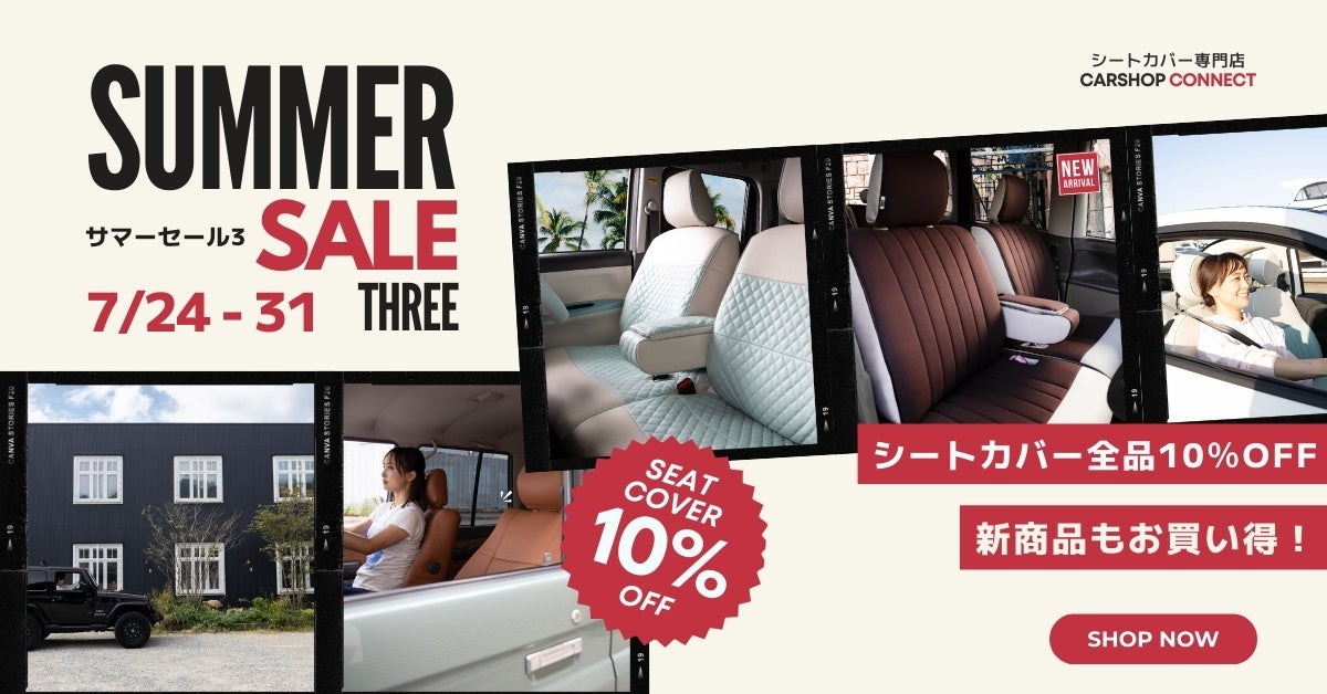 株式会社CONNECT(本社:福岡県福岡市、代表取締役社長:春山 克)が展開する車種別専用シートカバーを販売しているシートカバーの専門店カーショップコネクトから、暑さを吹き飛ばすサマーセールのご案内です。