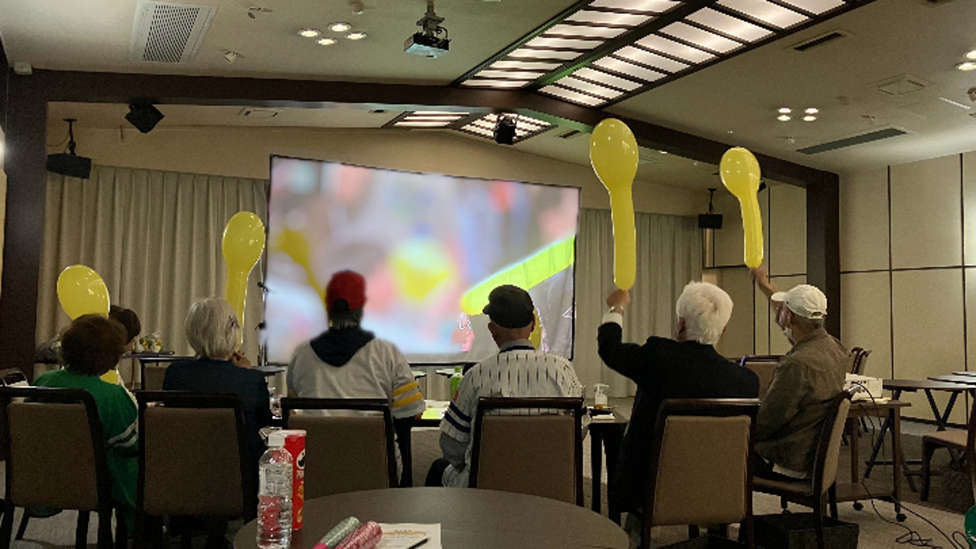 斎場内ではソフトドリンクなどの販売も行われ、参加者は軽食を持ち込みながら巨大スクリーンで野球観戦を楽しみました。また、高齢者と子供がお菓子を分け合う微笑ましいシーンや、一緒に試合結果の点数を予想するなどの、世代を超えた関わりが生まれました。