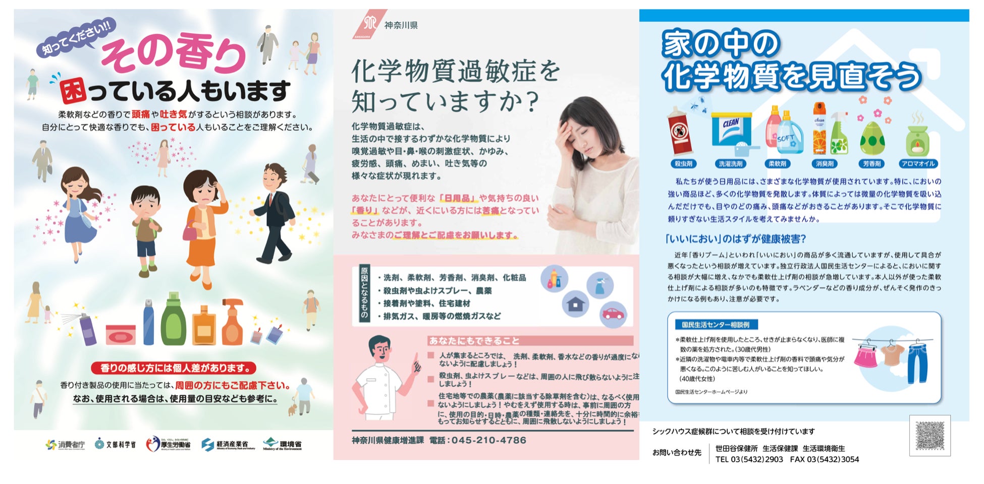 柔軟剤や合成洗剤等の香り成分が一因とされる「香害」への認知も非常に関心が高くなったことで都道府県や市町村ごとにそれぞれ工夫して啓蒙啓発をしておりますのでポータルサイトで「香害 〇〇県」「化学物質過敏症 〇〇市」などと検索いただくと発信している内容が確認出来ます。一部の都道府県や市町村では発信していないこともありますのでご了承下さい。