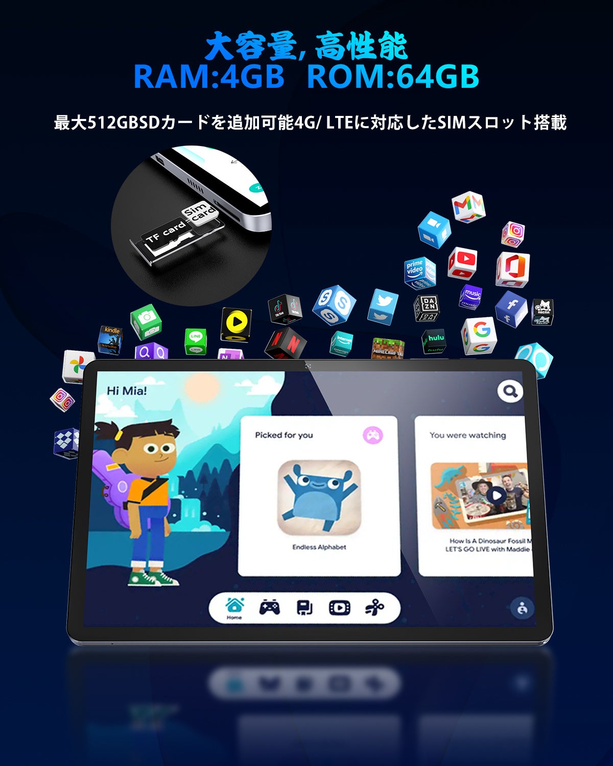 1920*1200フルHDの10.1インチIPSディスプレイ搭載+4つ独立のスピーカー8コアCPUT610
