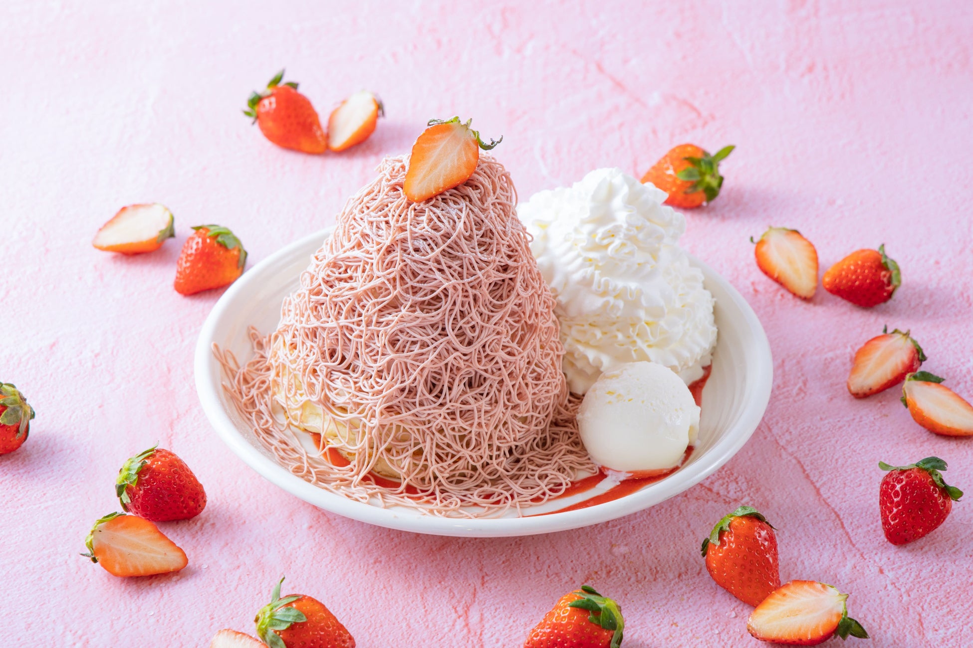 コナズ珈琲オリジナルのストロベリーモンブランクリームには、フリーズドライのストロベリーと、北海道産100%の生乳を使ったクリームチーズを使用しています。オーダーをいただく度に直径わずか1mmのクリームを絞り出すことで、軽く滑らかなくちどけを実現しました。さらに、ふわふわのホイップクリームやココナッツアイスを添えてハワイ仕立てにしています。コナズ珈琲でしか味わえない、春にぴったりの新商品をぜひお試しください。