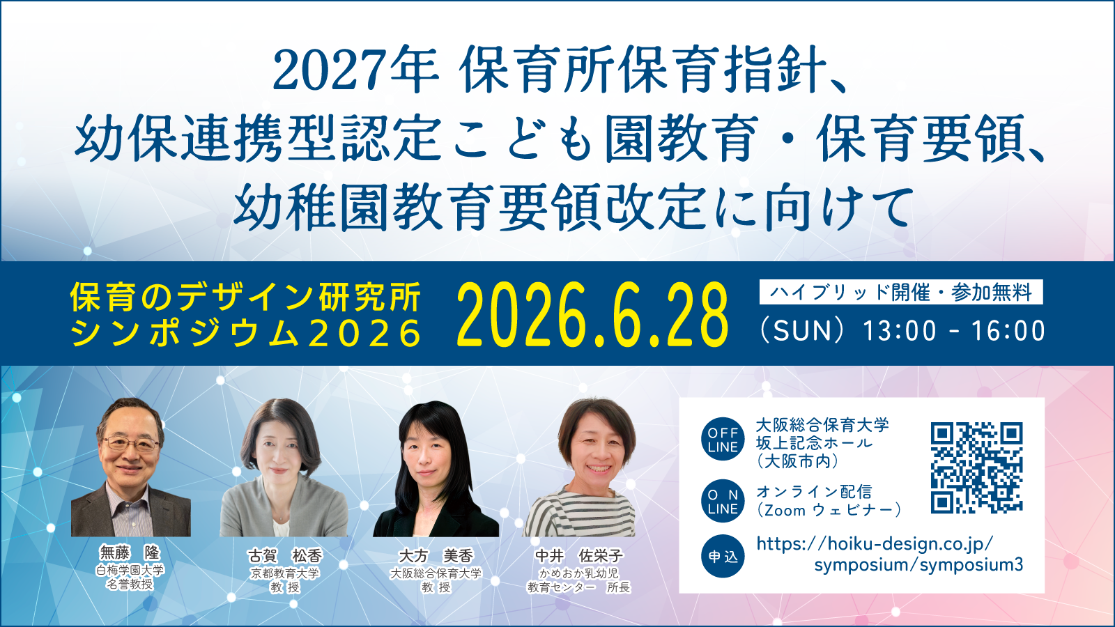 保育のデザイン研究所 シンポジウム2026 開催! 「2027年保育所保育指針、幼保連携型認定こども園教育・保育要領、幼稚園教育要領の改定に向けて」