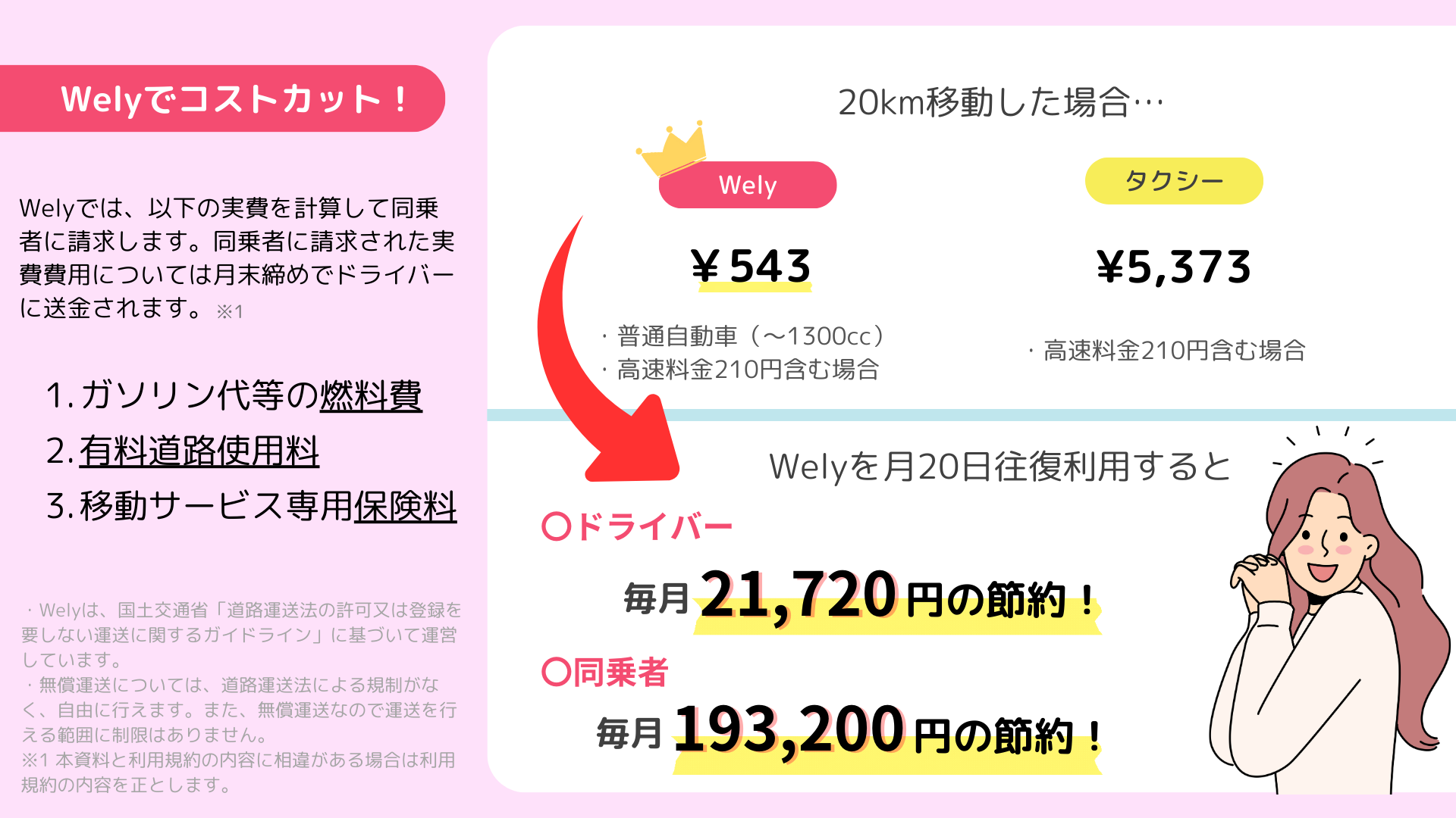 女性専用ライドシェアサービス『Wely』の実証実験を実施いたします。