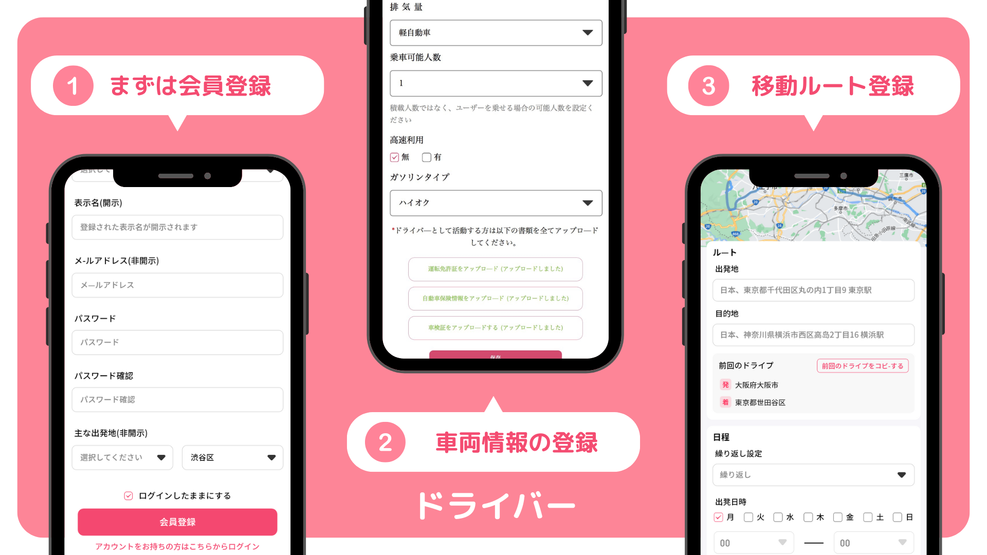 ドライバーと同乗者のマッチング精度の向上、ガソリン代などの実費負担の軽減、安全対策の強化に重点を置いて検証します。