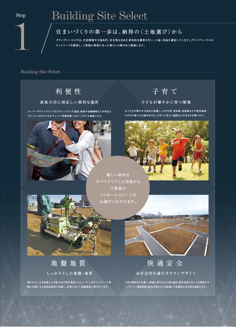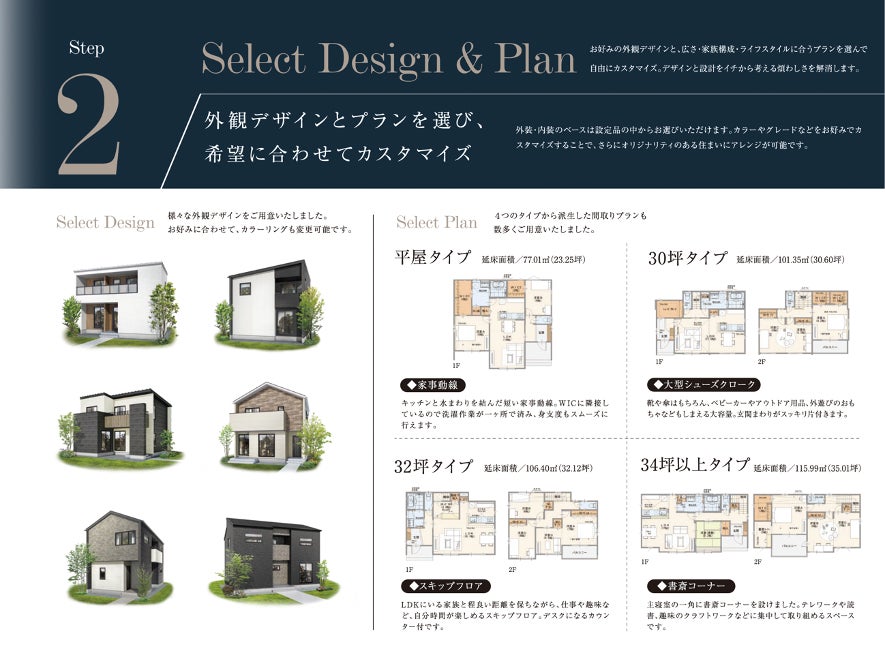 当社が所有する豊富な安心安全な宅地、豊富な建築実績を持つ設計プランに、お客様の個別のニーズやライフスタイルに応じた“想い”をプラスして頂く事で、より多くの方々に満足いただける価値ある住まいを提案します。