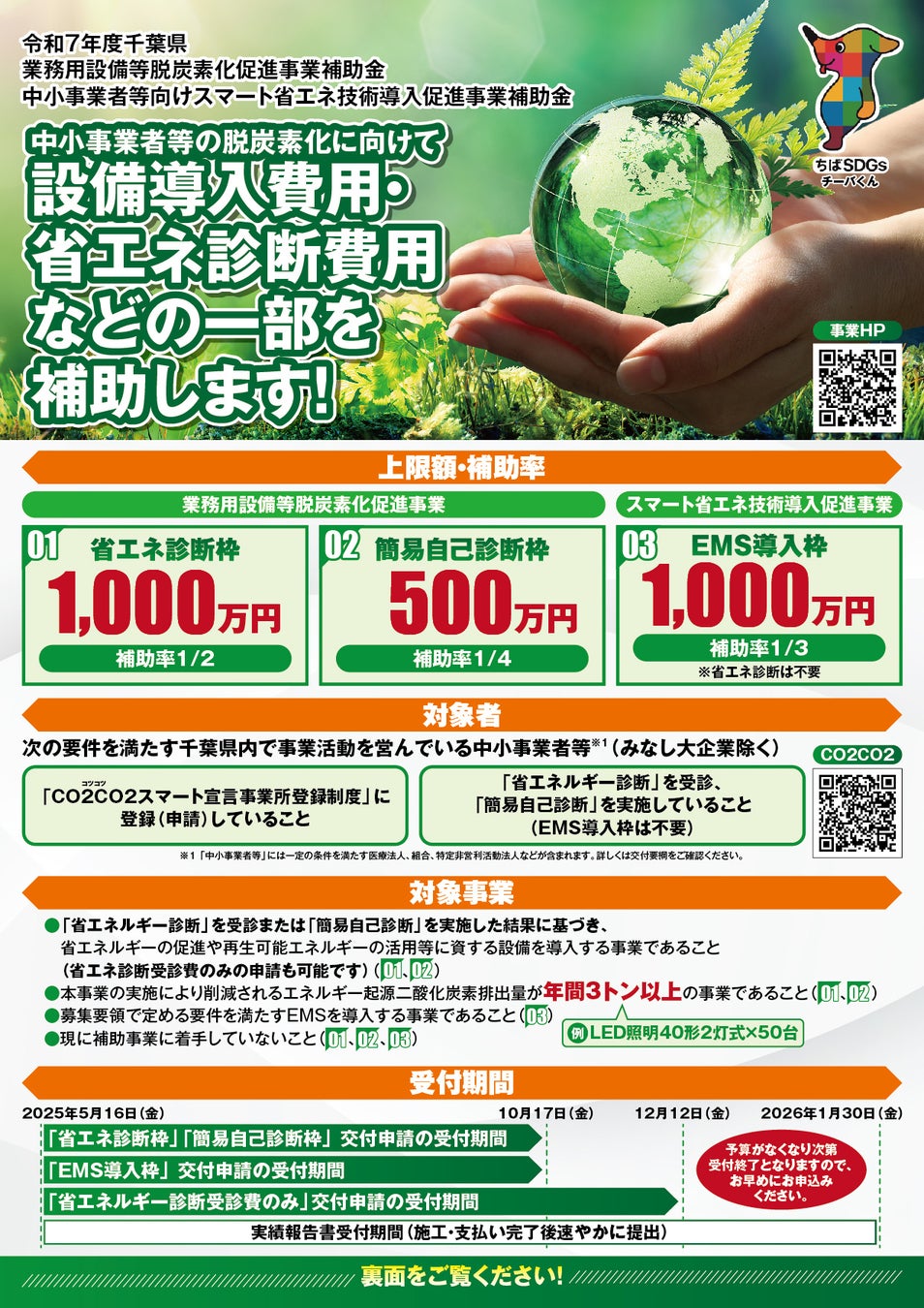 「令和7年度千葉県中小事業者等向けスマート省エネ技術導入促進事業補助金」