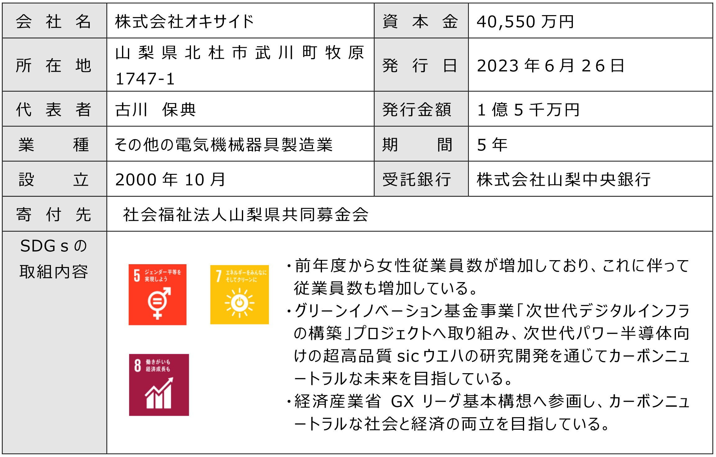 株式会社山梨中央銀行は、寄付オプション付私募債「山梨中銀SDGs私募債」1件/1億5千万円を受託しました。