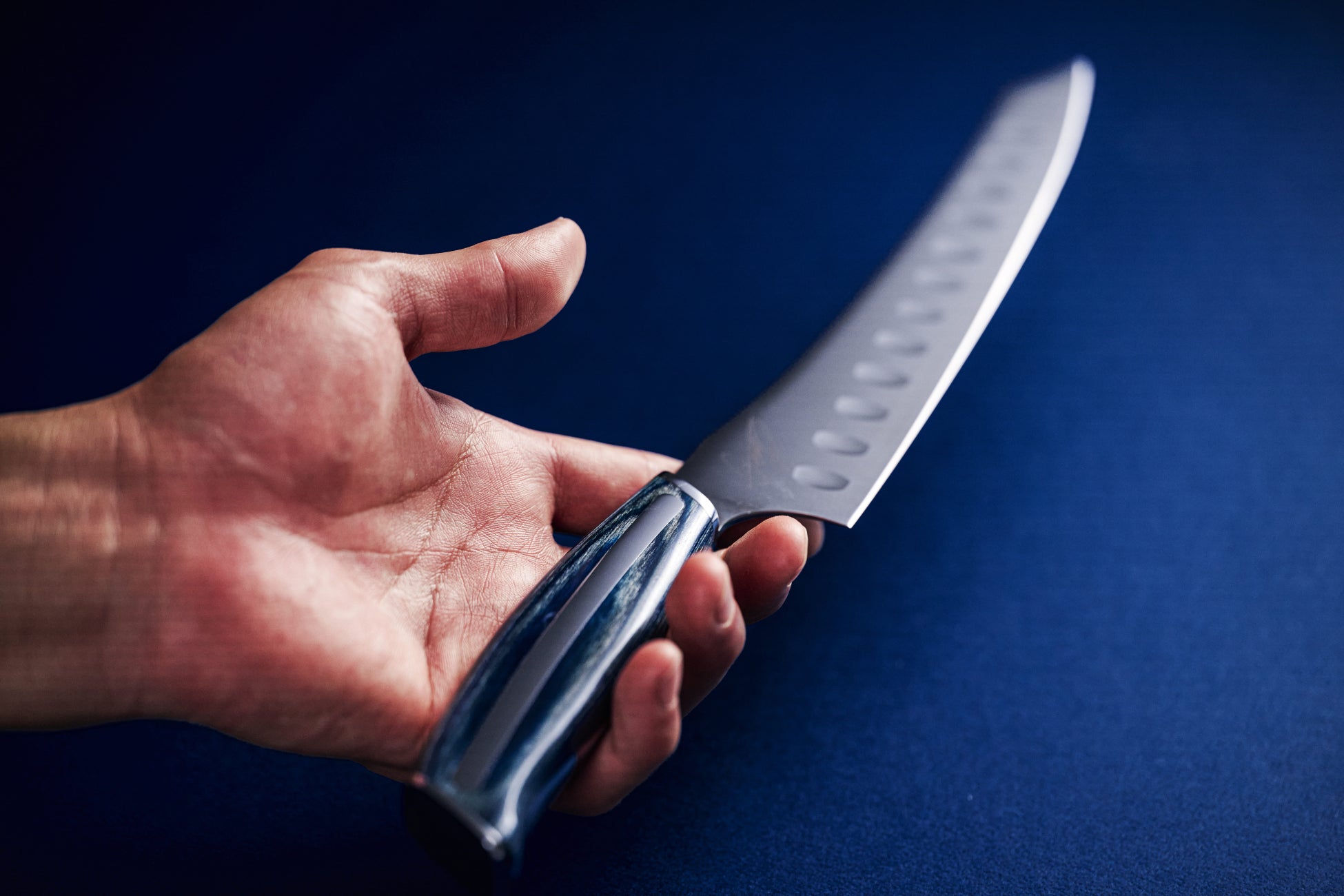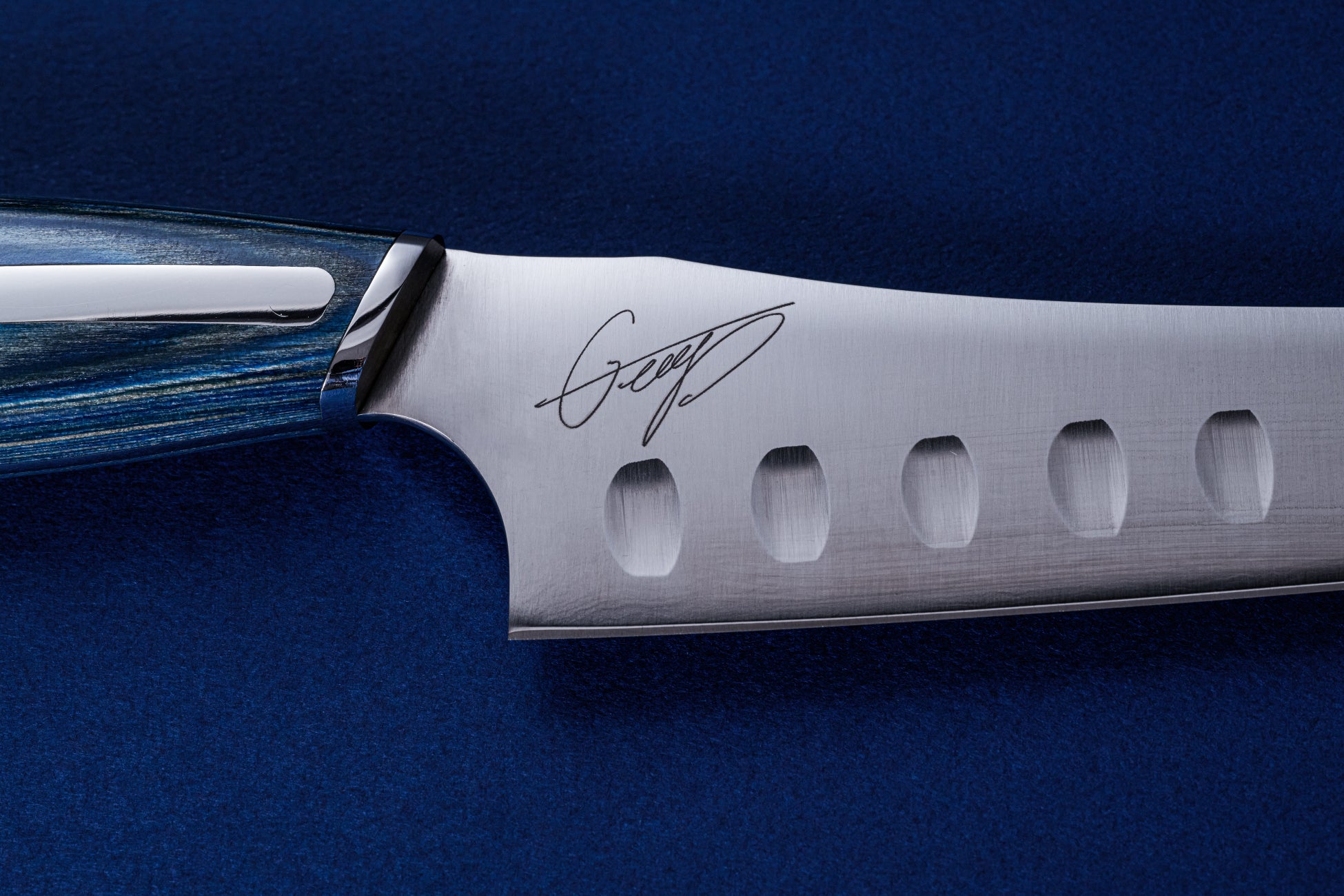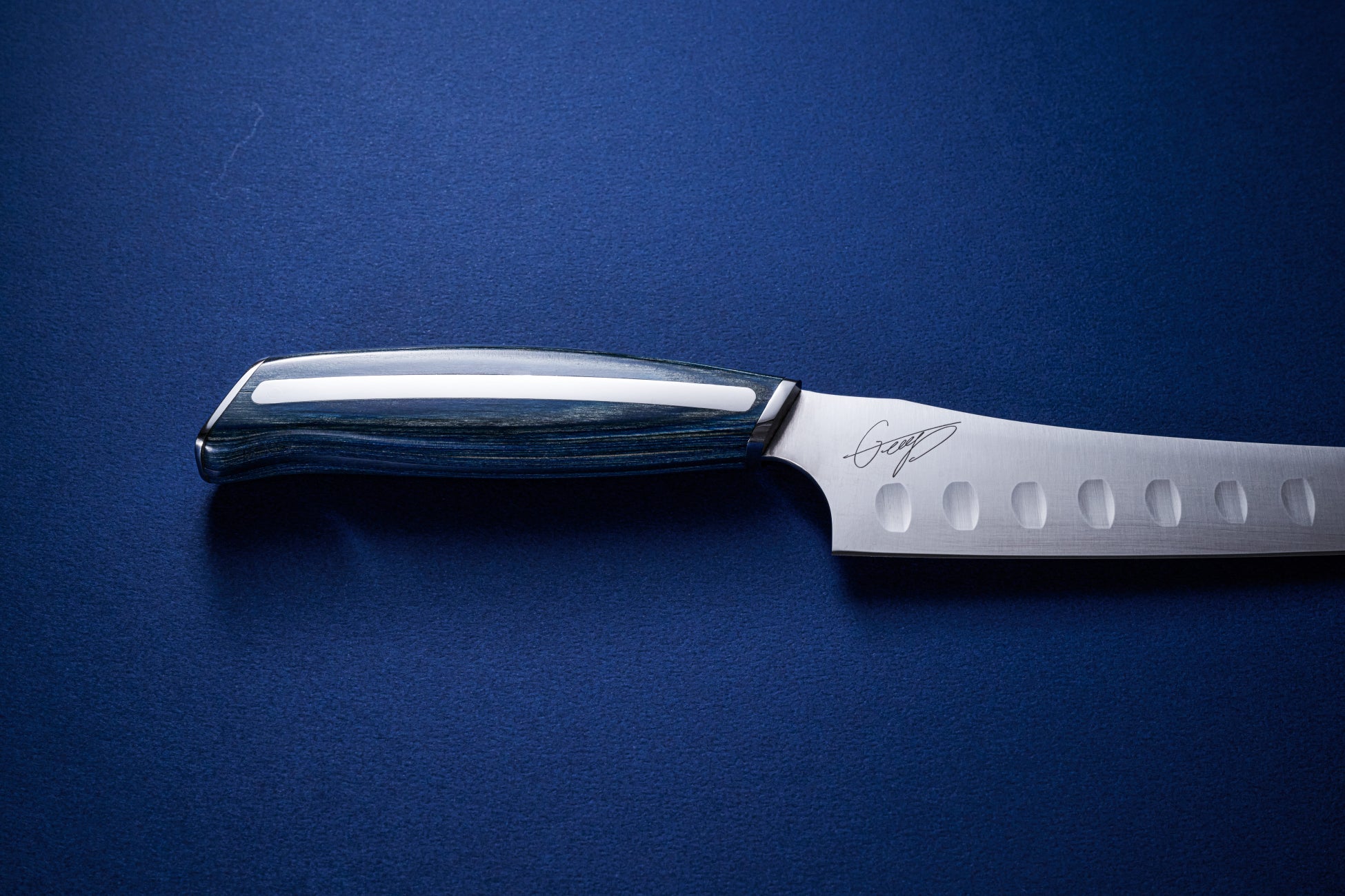 刃渡り設計から刃のカーブと先端の形状、ブレードの厚み、食材の張り付きを防ぐディンプル(窪み)加工まで、George氏の理想を詰め込みました。