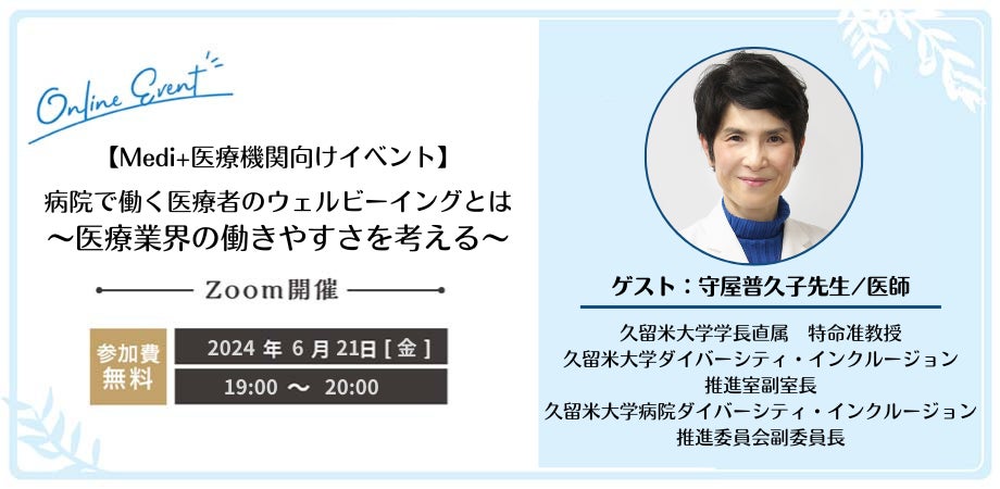 【Medi+医療機関向けイベント】 守屋普久子先生登壇 病院で働く医療従事者のウェルビーイングとは 〜医療業界の働きやすさを考える〜 |
