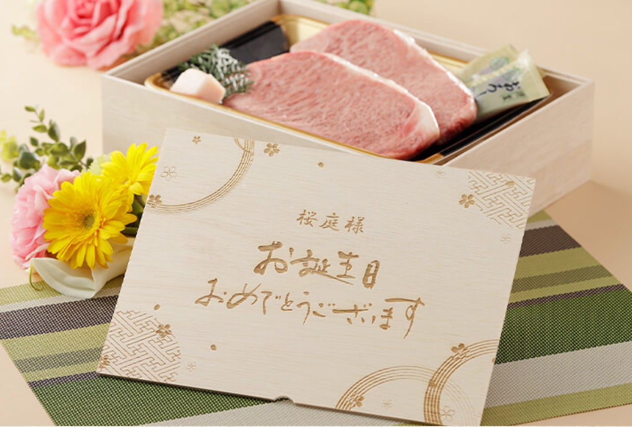 そのような想いをカタチにしたのが、当社が運営する公式サイトの「共創ギフト」サービス(https://gyubee.jp)。ギフトの贈り主がお届け先に届けたいオリジナルのメッセージを、お肉の内容や木箱への彫刻、動画のメッセージなど、贈り主のご希望に合わせて、様々な形にアレンジして作成する。