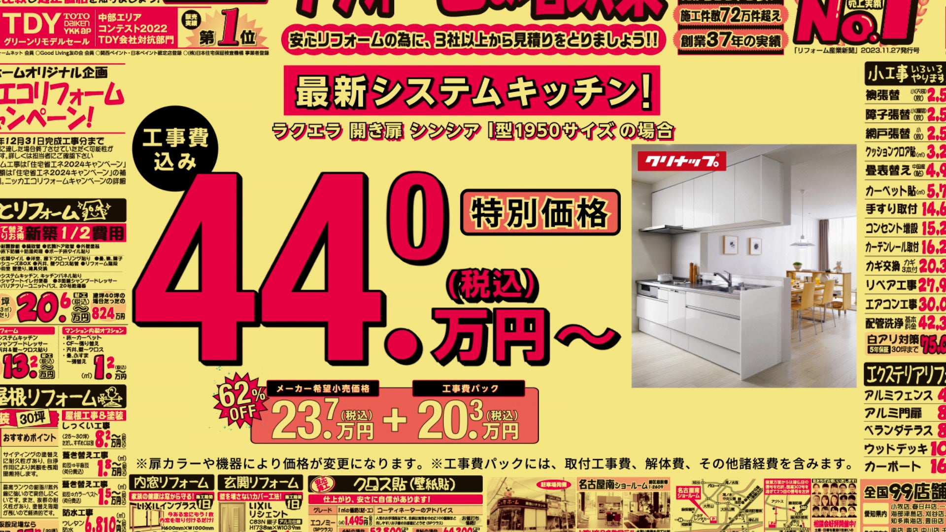 ※リフォーム産業新聞 業種別リフォーム売上ランキング2023 総合リフォーム店1位