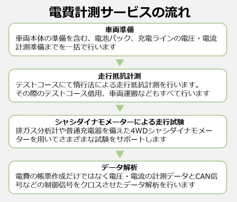 そしてこのたび、これまで培ってきた豊富な知識と経験を活かして、電費計測の技術を用いたEV開発支援サービスを提供することとなりました。