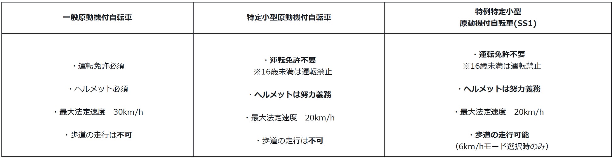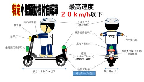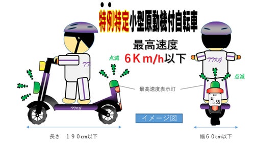 特定小型原動機付自転車は免許不要・ヘルメット着用は努力義務(道路交通法では軽車両扱い)