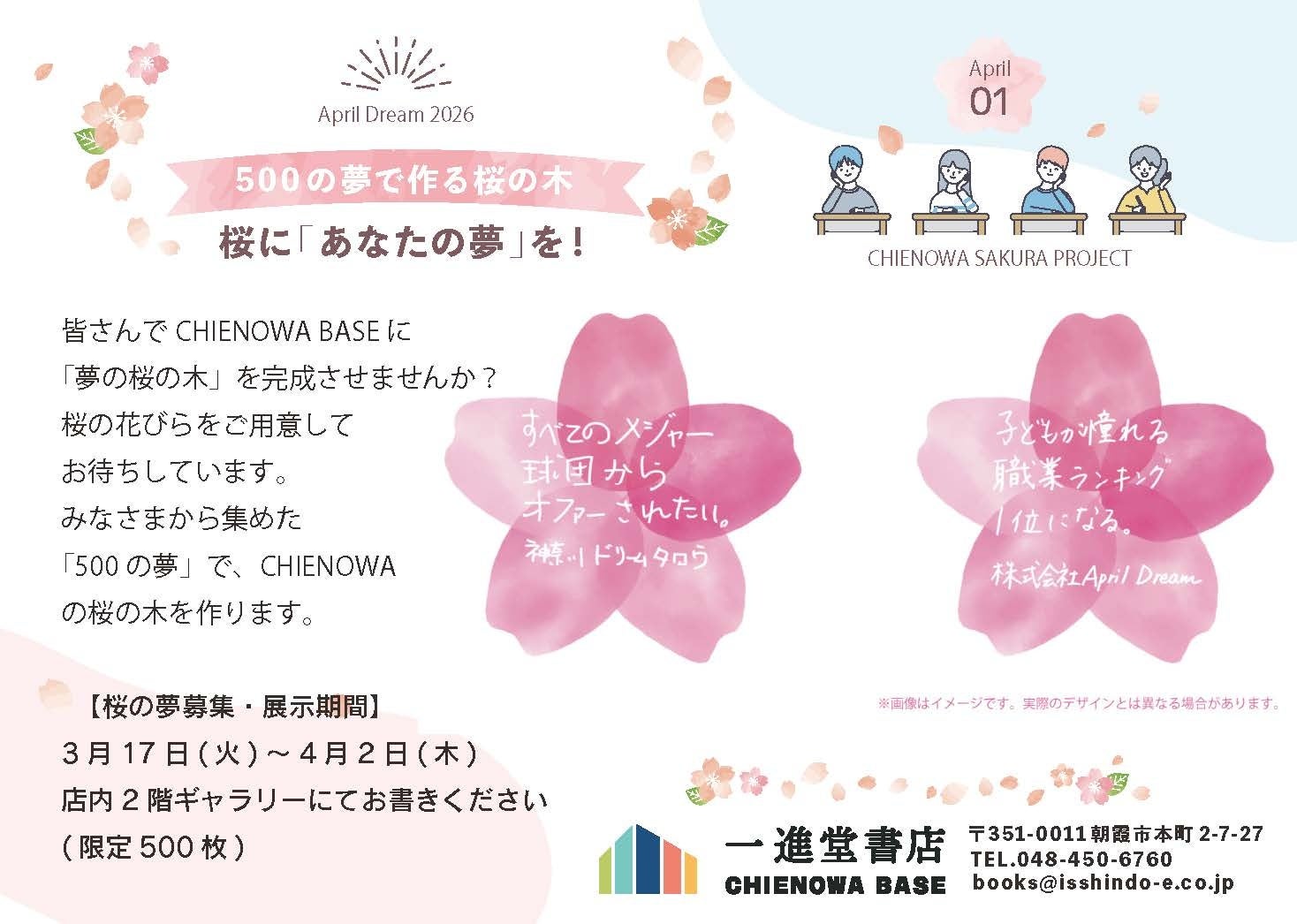 桜の夢募集・展示期間:3月17日(火)〜 4月2日(木)※撤収は6日です