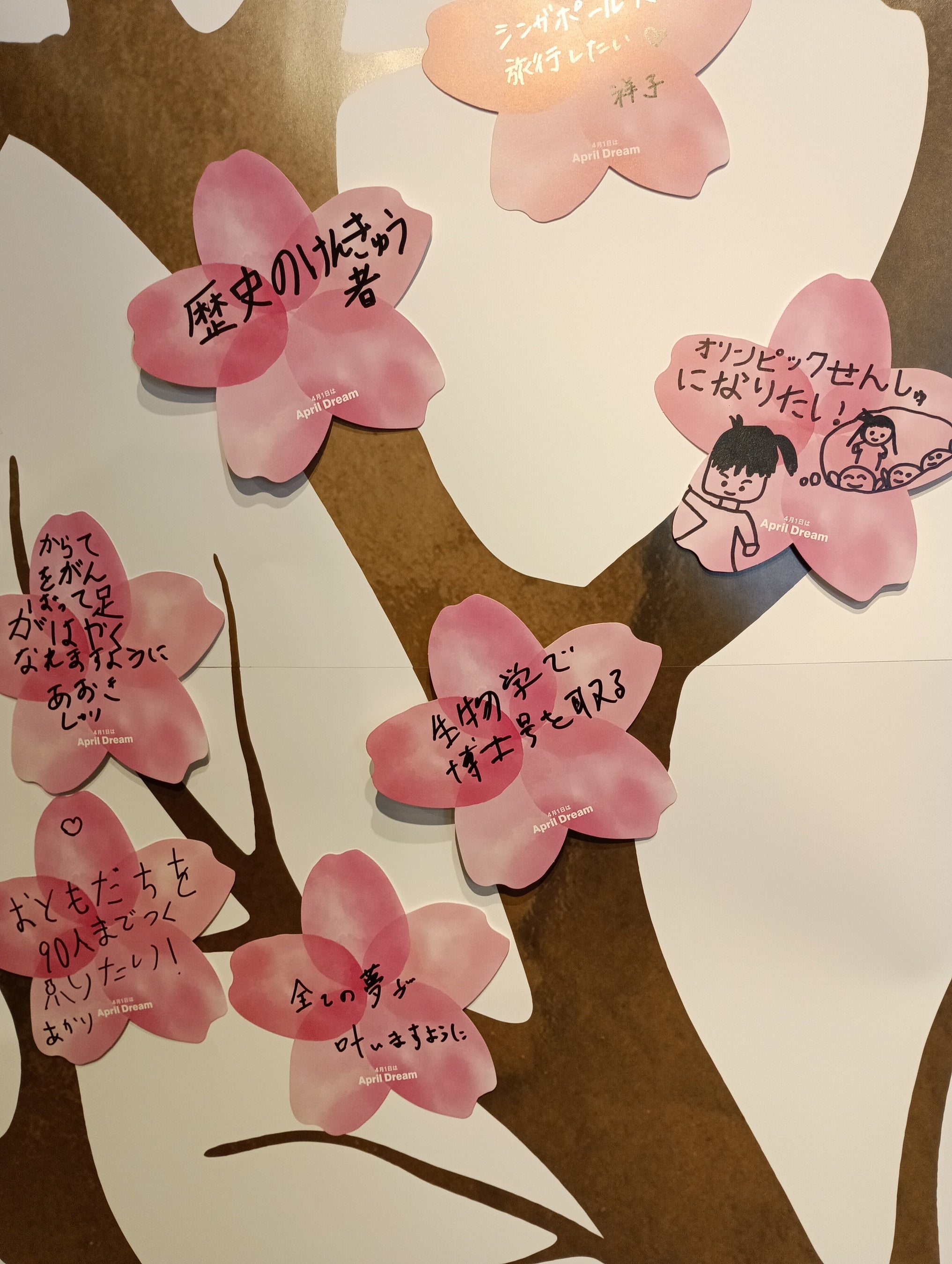 ―お客様が桜の花びらに書いてくれた夢が、一枚また一枚と貼られていきます。