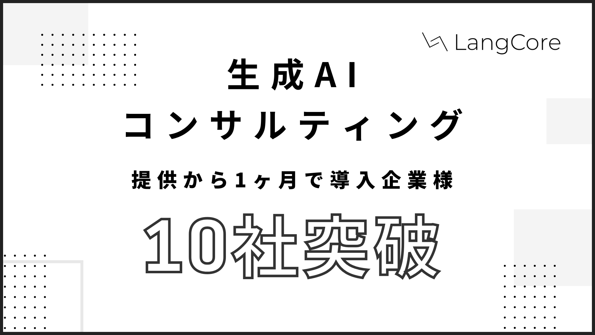 【生成AIコンサル無料キャンペーン開始】月額20万円からの生成AIコンサルティングサービスの導入社数が開始から1ヶ月で10社を突破 | 株式会社LangCore