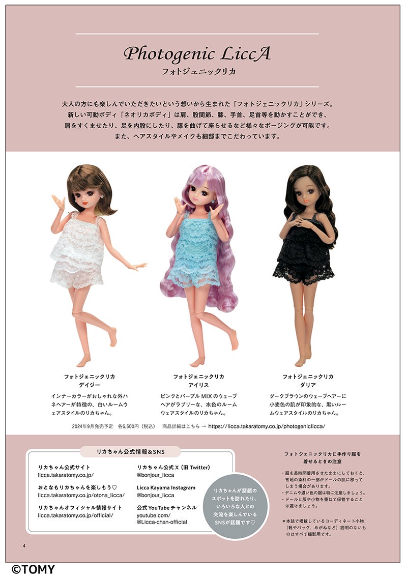 可動ボディでポーズも決まる!「リカちゃん」新シリーズ「フォトジェニックリカ」の手作り服が作れる手芸本『フォトジェニックリカ 今着たい服』9月24日(火)発売!