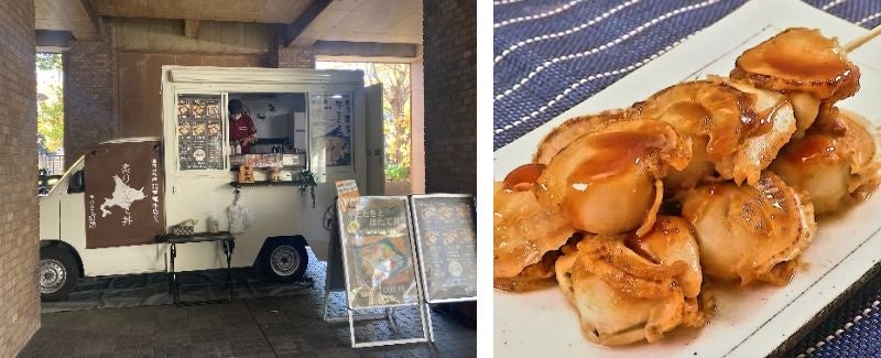 提供メニュー:海鮮串(ホタテ炙り)、タコ唐揚げなど