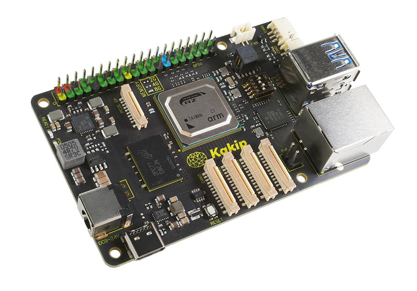 ユリ電気商会の自社製品であるAI-SBC 「Kakip(カキピー)」を展示いたします。KakipはルネサスのAI-MPU "RZ/V2H"をコアに搭載する頭脳とフィジカル制御の両方を備えた国産のAIシングルボードコンピュータです。3種類のCPUをマルチOSで制御可能で、例えばLinuxでAI画像処理を含めたアプリケーションを制御しつつ、 RTOSで外部機器を制御するなどの分散処理が可能です。ロボット等様々な組込アプリケーションの研究開発やPoC、教育などに最適です。