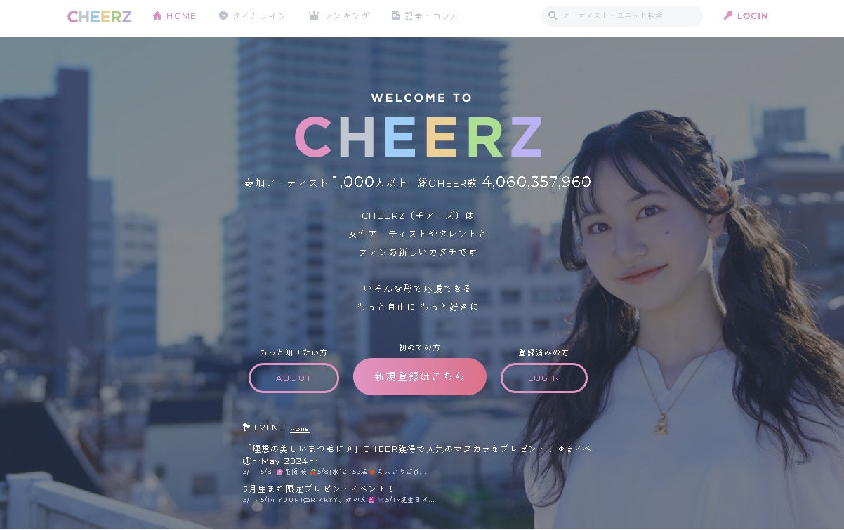 2024年4月16日(火)、弊社が運営するGalaxy Studios登録の「せら」が大人気コミュニティサービスのCHEERZトップページに掲載されました!