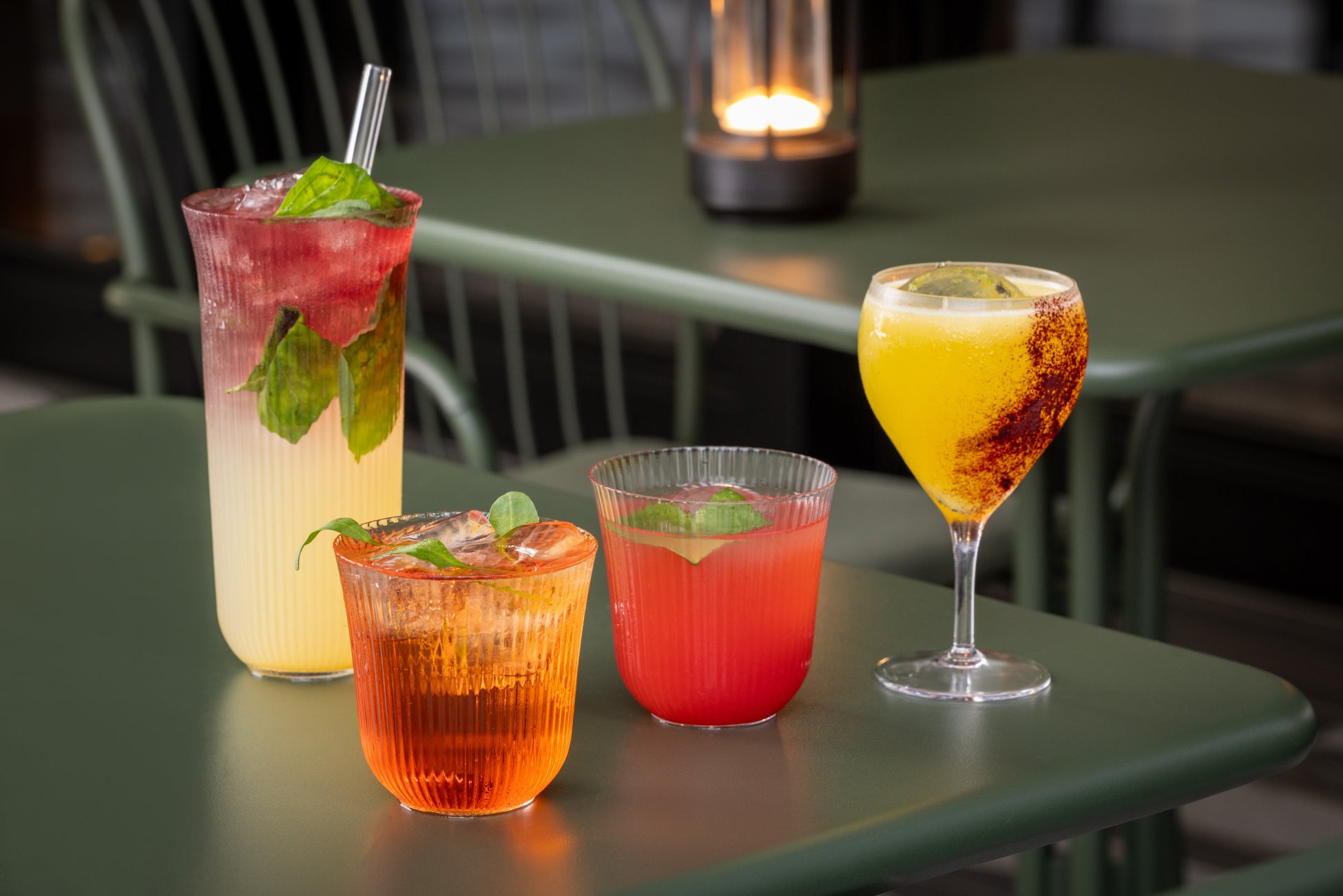 柑橘のビターな甘みに微発泡が心地よい「アメリカーノ」、テキーラ香る芳醇でフルーティーな「ブラッド アンド サンド」、様々なスパイスとパッションフルーツでオリジナルのアクセントを加えた「ミントジュレップ」、洋梨の甘みとバジルの清涼感が初夏にぴったりな「ペアクーラー」と、どれも他では体験できないユニークなツイストを加えた特別なカクテルを取り揃えました。爽やかな季節にふさわしい清涼感あふれる一杯が、初夏の夜をより特別で心地よい時間へと誘います。
