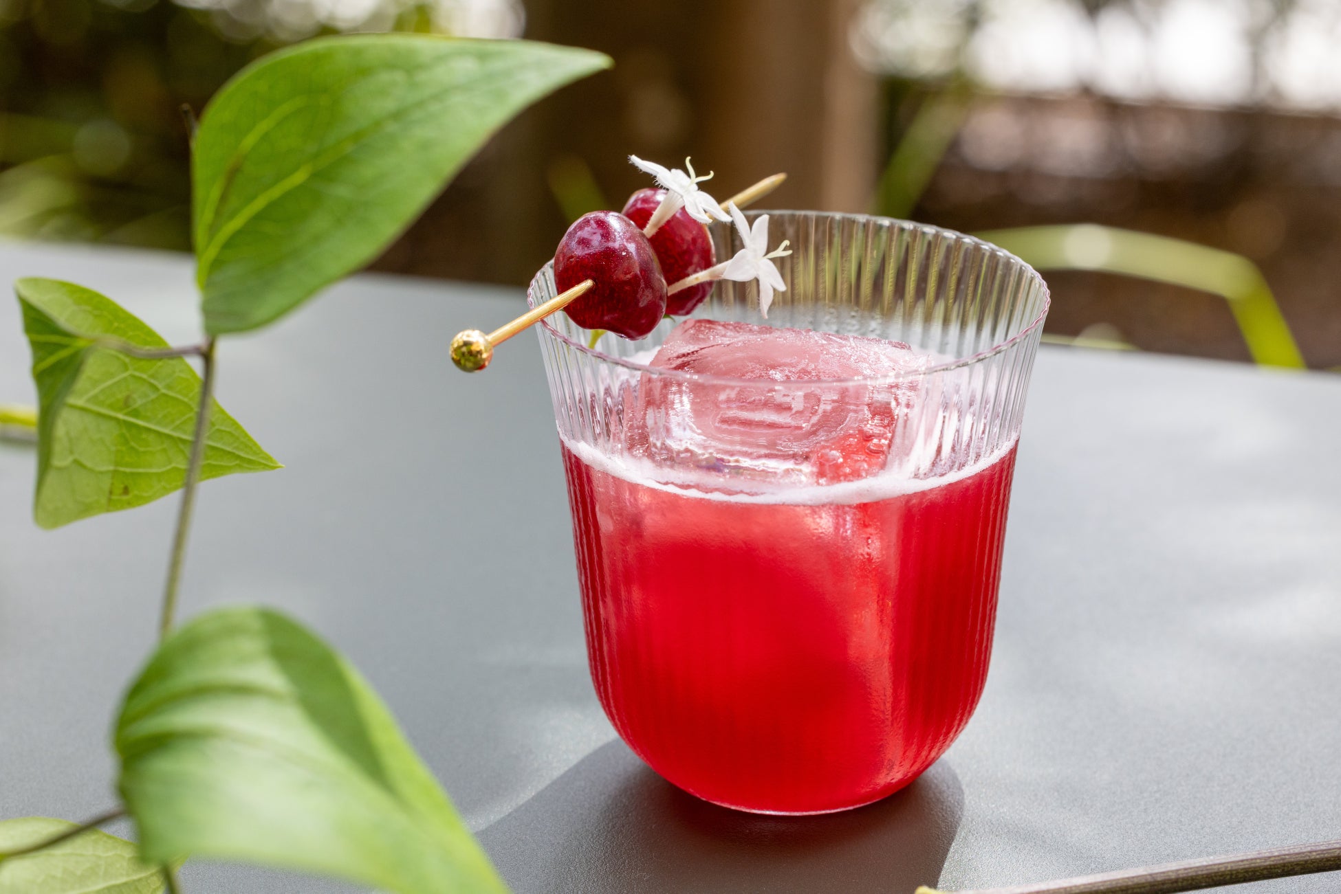 ル・プリスティン東京のレストラン&カフェでは、ベルギー本店「ル・プリスティン」のシグネチャーカクテル「バジルスマッシュ」を、ノンアルコールでアレンジしたオリジナルモクテル「ル プリスティン チェリースマッシュ」を期間限定でご提供いたします。旬のチェリーをテーマに、酸味と甘みのバランスが絶妙に調和した奥深い味わいに仕上げた一杯。ベースには、プレミアムノンアルコール・ボタニカルスピリッツ「Bôtan SHIZO(ボタン シゾ)」を使用し、柚子と赤紫蘇、チェリーのフレーバーが繊細に絡み合います。さらに、ル・プリスティンのロゴマークをあしらったスタイリッシュなアイスキューブが、深紅のモクテルに洗練されたアクセントを添えます。フレッシュなメロンとチェリーのスイーツとのペアリングもおすすめ。甘美な余韻を引き立てるチェリースマッシュとともに、ル・プリスティン東京で特別な初夏のひとときをお楽しみください。