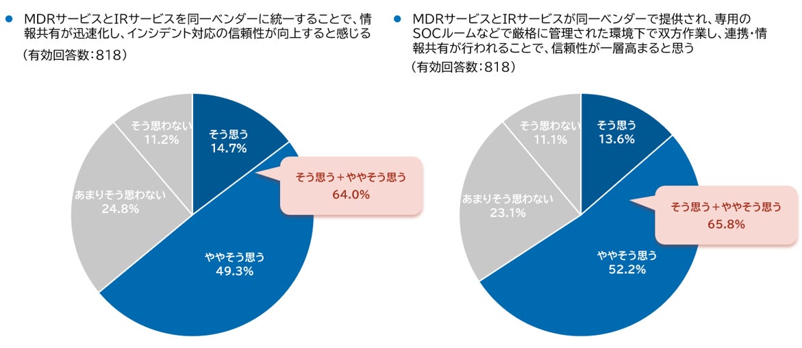また、MDRとIRサービスは同一ベンダーを採用したほうが、情報共有が迅速化し、インシデント対応の信頼性が向上するという回答が6割以上となりました。