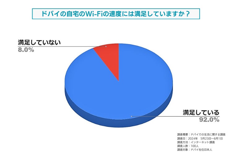 弊社が運営する『ドバイ総合研究所』は、ドバイ在住の日本人を対象に「ドバイの自宅のWi-Fi速度に対する満足度」についてアンケート調査を実施しました。結果は以下の通りです。