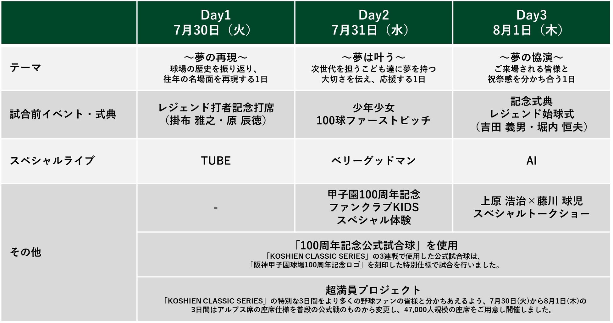 8月1日(木)阪神甲子園球場開場100周年〜100周年を記念し開催した三夜連続のスペシャルイベント&式典〜「KOSHIEN CLASSIC SERIES」大盛況のうちに閉幕!