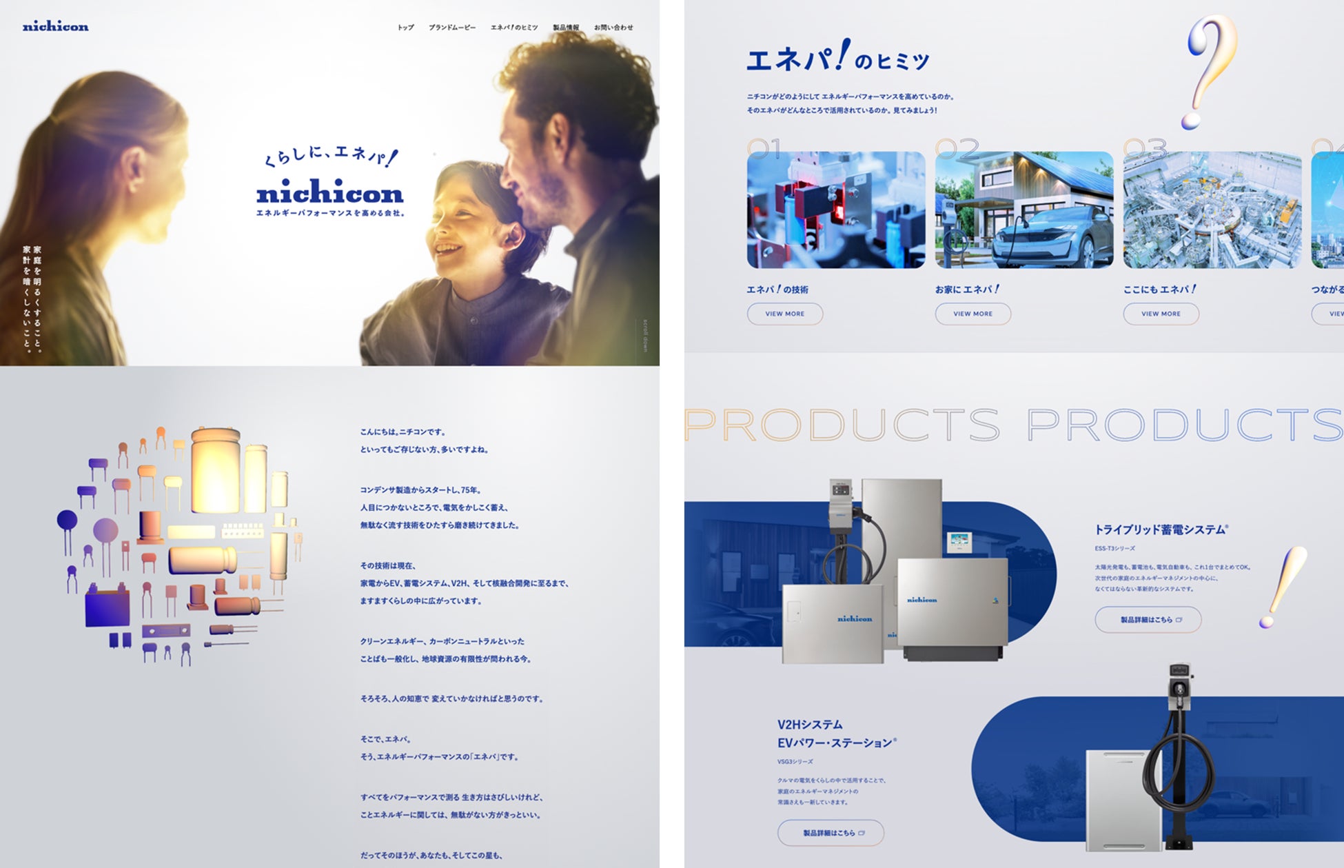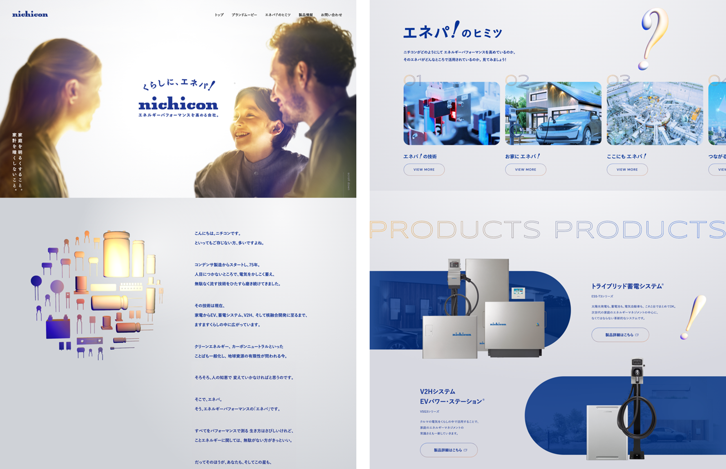 エネルギー(光)を感じるトーン&マナーのもと、サイトを来訪する一般の人にわかりやすく、明るい未来社会を想起させる デザインで制作。各種ソリューションやサービスの紹介のほか、エネルギーパフォーマンスに優れた生活をわかりやすく解説した コンテンツをご用意しました。
