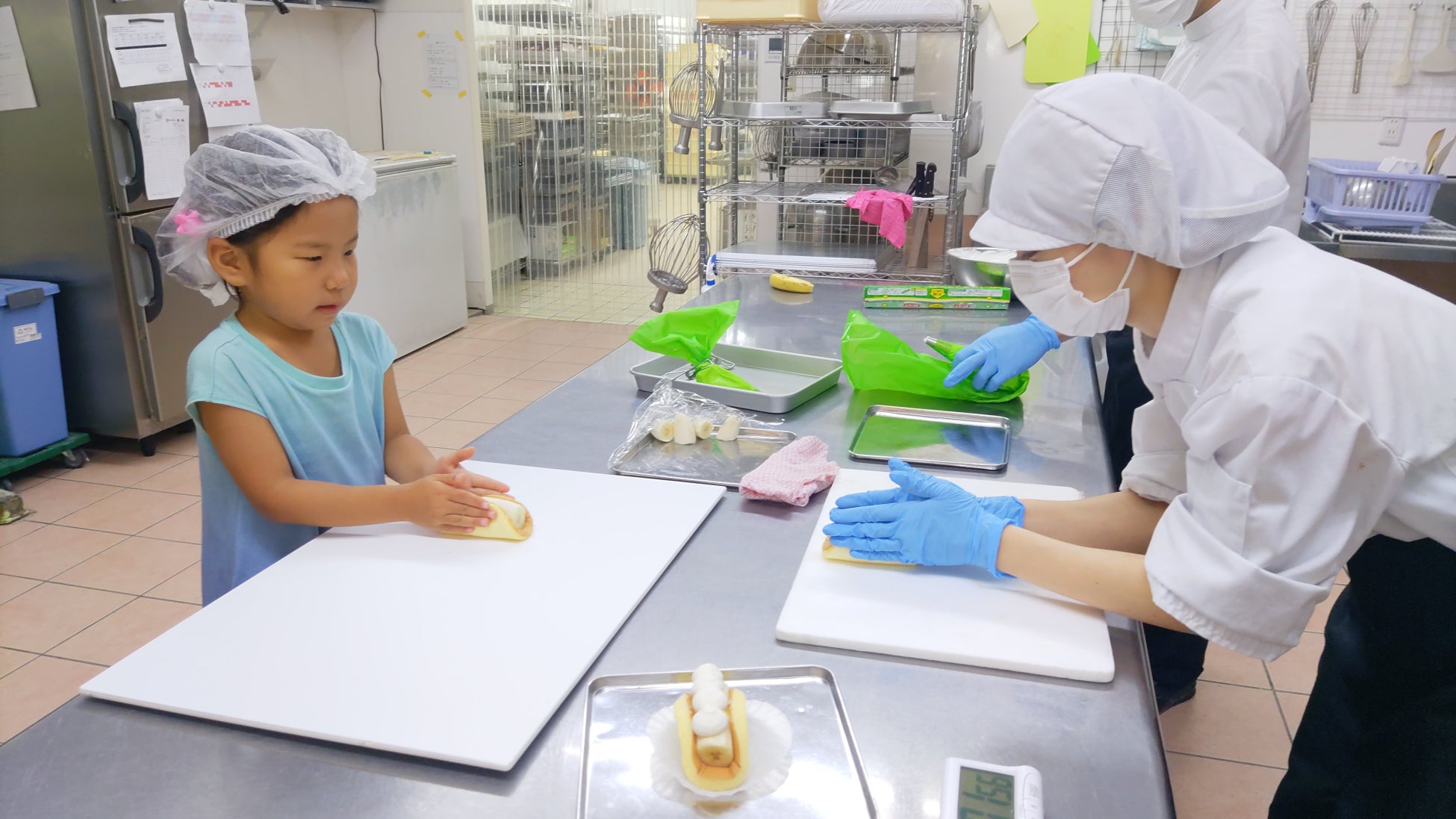 当店自慢の生バナナケーキをパティシエの指導のもと一緒に作ります。