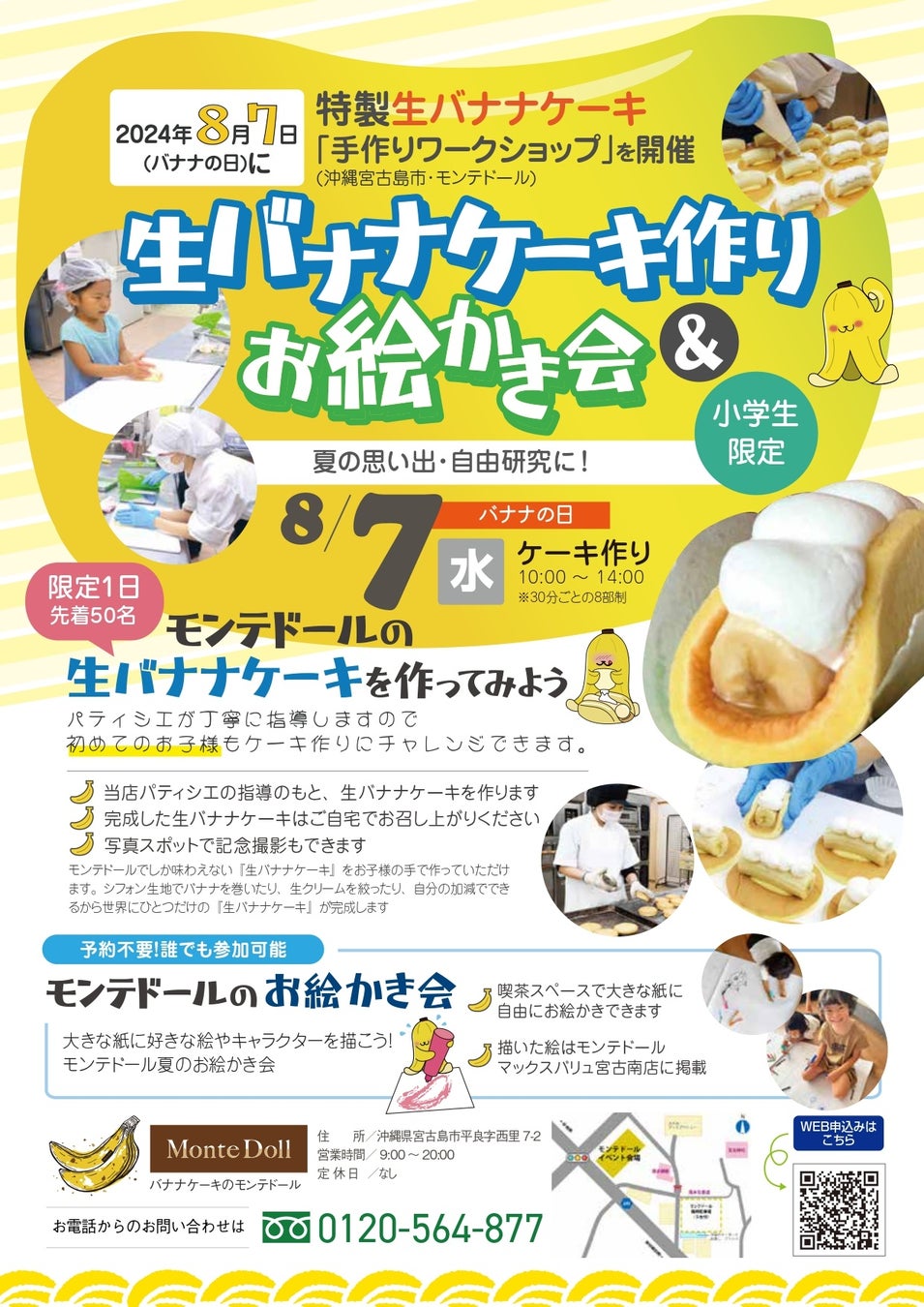 ドラゴンフード株式会社(所在地:沖縄県宮古島市 屋号:モンテドール)は、昨年に引き続き2024年8月7日(水)バナナの日に、パティシエ体験イベントを実施いたします。