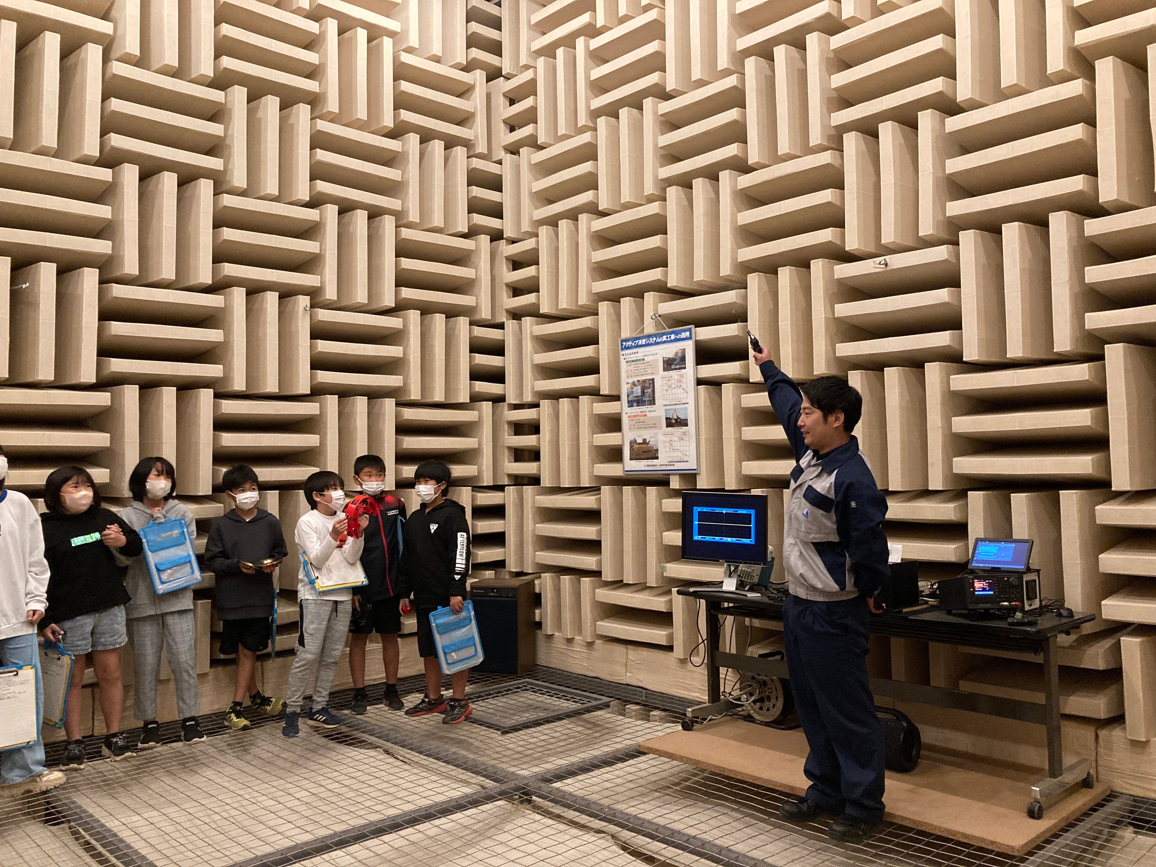音響実験棟では、人工的に作成した音で騒音を打ち消す当社開発技術「アクティブ消音システム」を紹介しました。