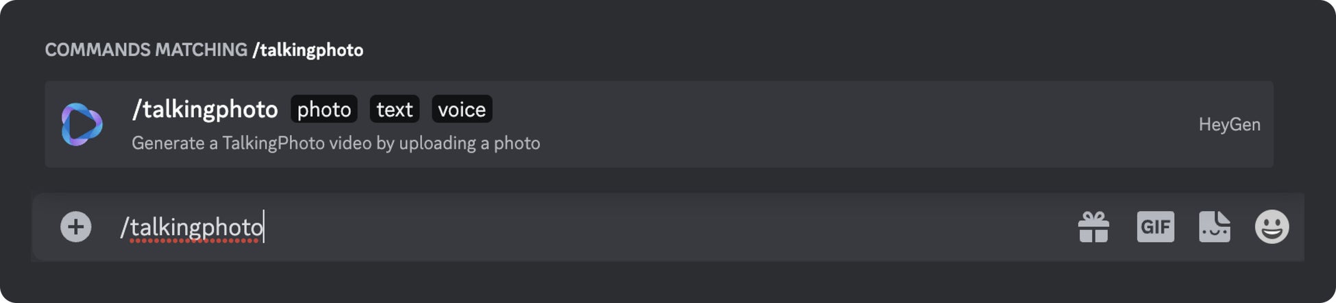 ステップ1:Discordチャットで/talkingphotoと入力します。