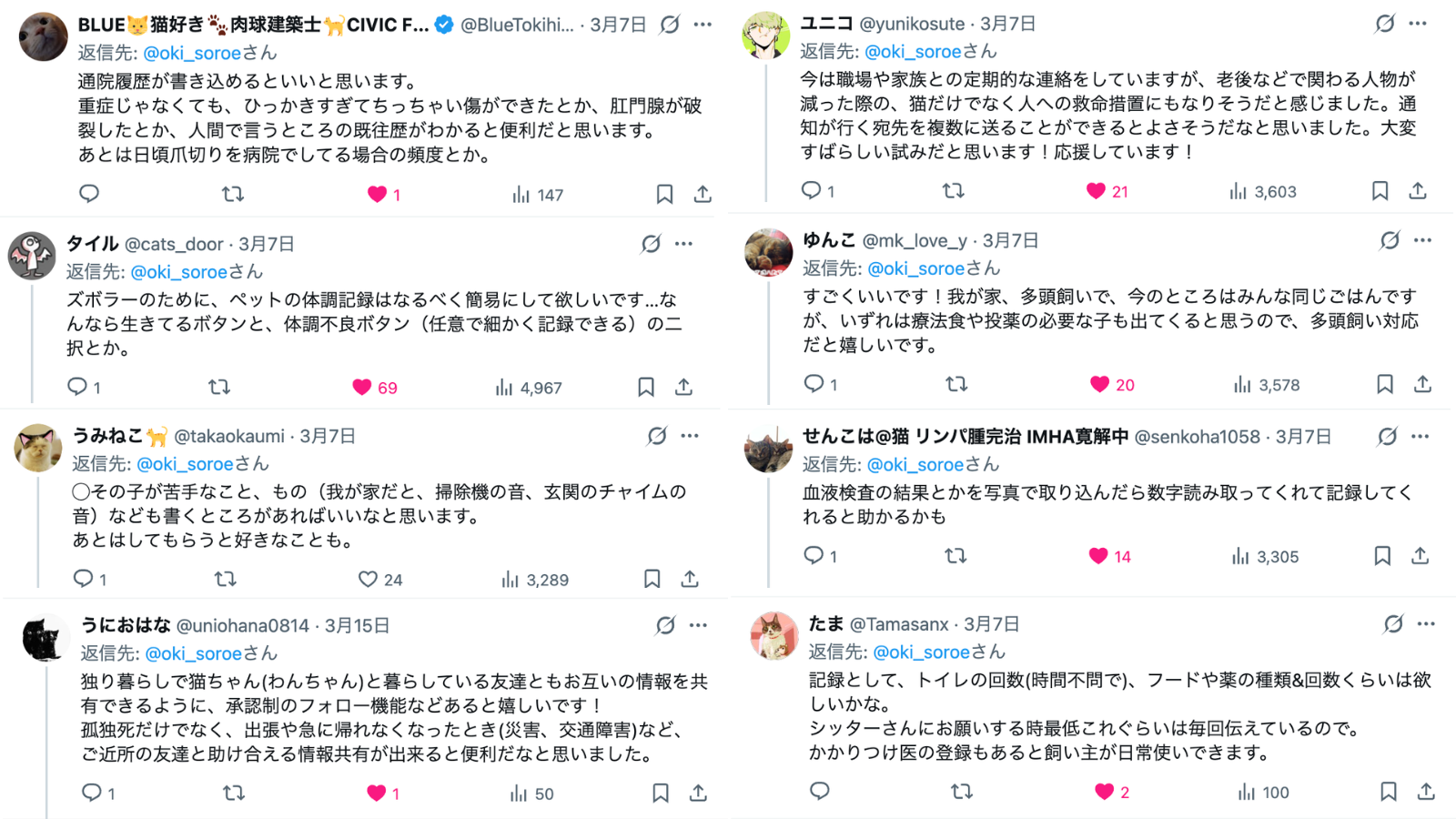 ペットと暮らすユーザーからの熱い要望ポストが飛び交う